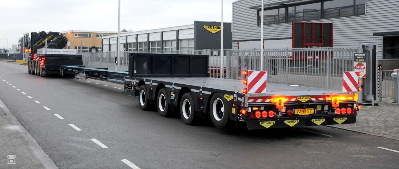 Broshuis SL-trailers zijn uitgerust met hydraulische vering en onafhankelijke wielophanging. Daardoor zijn deze opleggers bijzonder stabiel. De oplegger werd afgeleverd met alle denkbare opties waaronder afstandsbediening voor de besturing.