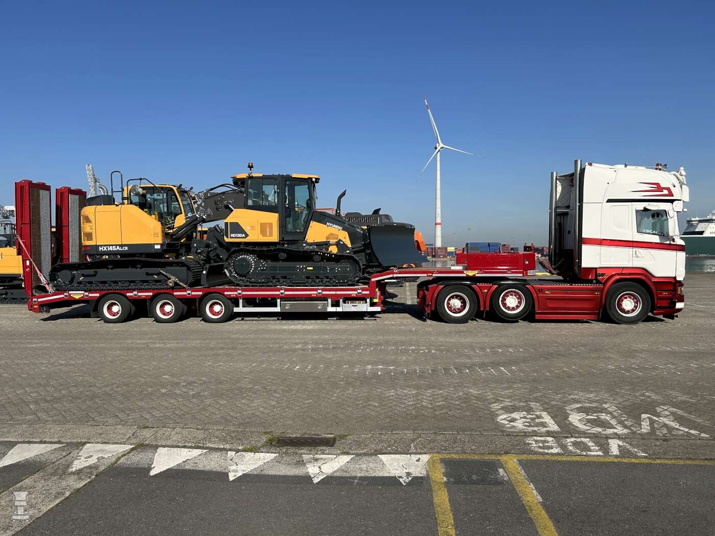Bij de keuze voor de oplegger waren vooral technische eigenschappen doorslaggevend. “Het lage eigengewicht en de vele opties speelden een grote rol”, zegt Siggi. “Het eigengewicht helpt bij de standaard 44 ton die je in België mag wegen en daarnaast voldoet de oplegger aan de 48-tonregeling, wat 4 ton extra laadvermogen oplevert. De robuustheid van het chassis is een groot pluspunt; de oplegger ‘geeft zich niet’, zoals wij zeggen. Daarmee bedoelen we dat de voorspanning en de stevige constructie ervoor zorgen dat de laadvloer niet doorbuigt of kromtrekt, zelfs niet met zware machines erop.”