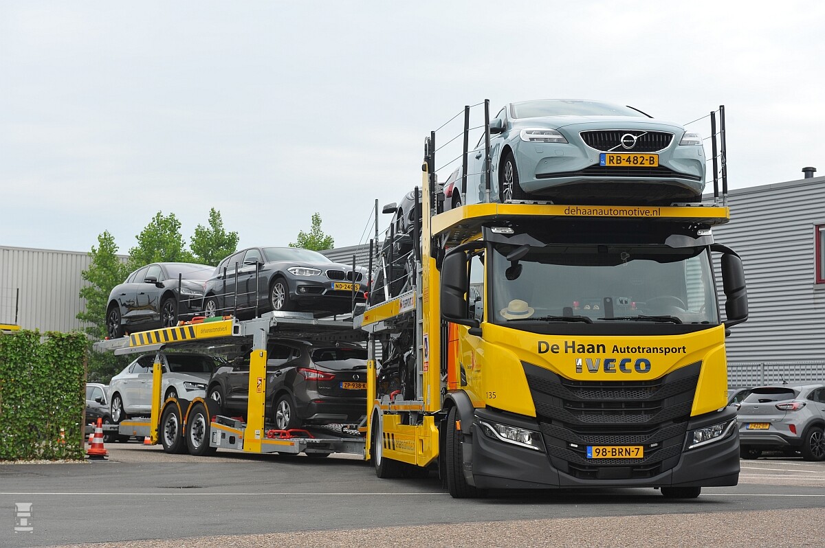 De Haan Automotive verleent tal van diensten in de automotive sector. ”Maar de hoofdmoot is het uitvoeren van transporten met auto’s voor uiteenlopende klanten”, legt directeur Peter de Haan uit. “We rijden voor dealerholdings, voor leasemaatschappijen en voor fabrikanten voor wie we dealers beleveren. Daarnaast zijn we actief met import van auto’s uit bijvoorbeeld Frankrijk en Duitsland.” De Haan legt uit dat dit leidt tot een wagenpark van inmiddels 36 autotransporters. In de regel leggen de autotransporters zo’n 100.000 kilometer per jaar af, de trucks die verder richting het buitenland rijden, komen aan 120.000 kilometer. De trucks worden ingeruild als zij een miljoen kilometers hebben afgelegd. De Haan laat al het onderhoud door de merkdealer uitvoeren. In het geval van Iveco is dit Kwakernaak Bedrijfswagens uit Waddinxveen.
