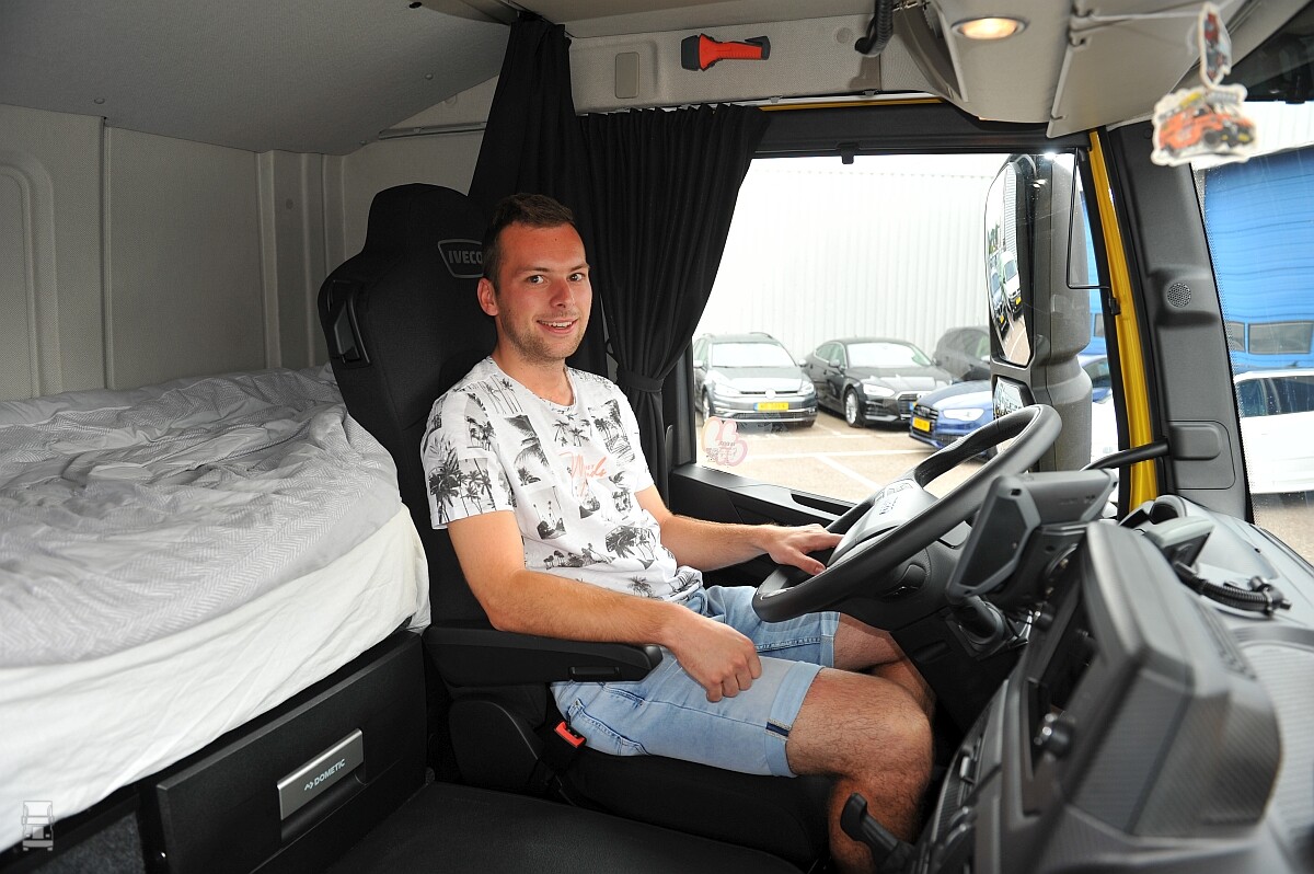 De Haan koos voor de S-Way met een Cursor 11 motor die goed is voor 460 pk. “Daarmee kom je nooit tekort en in combinatie met de Iveco Hi-Tronix volautomatische transmissie is de chauffeur verzekerd van een comfortabele rit, waarbij hij altijd ruim voldoende trekkracht voor handen heeft. Chauffeur Stefan de Jong is meer dan tevreden met zijn nieuwe Iveco. “Ik heb nu meer ruimte, meer vermogen en meer trekkracht vergeleken met mijn vorige auto. Het dashboard van de S-Way is mooi afgewerkt met carbon-delen en de beeldschermen zijn eenvoudig te bedienen. Het nieuwe stuurwiel van de S-Way ligt fijn in de hand en met deze knoppen op het stuur grijp je nooit mis. Ik kan al m’n spullen goed kwijt en wanneer ik een nachtje over sta, lig ik een bed met een lekker dik matras.”