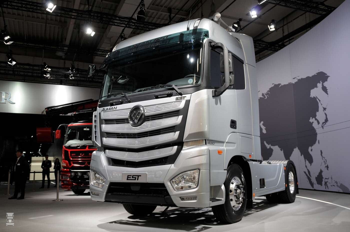Het is namelijk wel degelijk een Chinees, maar het is een truck van het merk Foton Auman, en dat merk heeft een joint-venture met Daimler, de moeder van Mercedes-Benz. Het is dus niet vreemd dat het ontwerp van met name de grille even geleend werd uit de Mercedes keuken. Ik fotografeerde deze truck op de IAA waar Daimler voorbeelden van al hun merken uit alle hoeken van de wereld heeft staan.