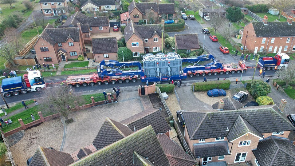 De transformatoren waren nodig om de capaciteit van het substation in Biggleswade uit te breiden, zodat meer huizen konden worden gebouwd. Elke transformator weegt 178 ton. Klein zijn ze ook niet: met 9 meter lang, 5,4 meter breed en 5 meter hoog passen ze niet zomaar op elke oplegger. Collett & Sons Ltd heeft echter het juiste materiaal: het transportbedrijf, dat al sinds 1928 bestaat, specialiseert zich in moeilijke en abnormale ladingen.