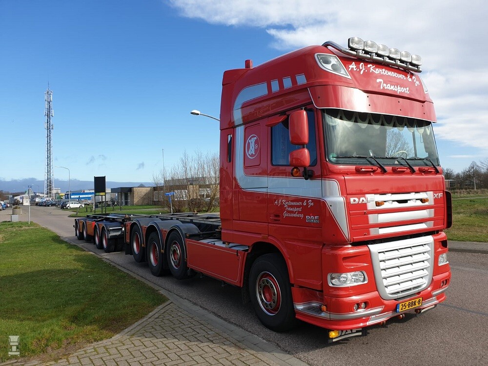 A.J. Kortenoever & Zn Transport BV uit Giessenburg heeft een combinatie op de weg gezet met maar liefst acht assen. En nee, dit is geen LZV maar een combi binnen de normale afmetingen. Het gaat om een DAF XF 8x2 triple met een nieuwe vier assige Vogelzang container aanhangwagen.