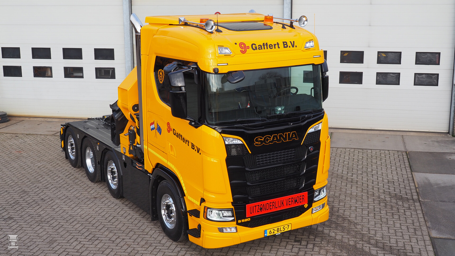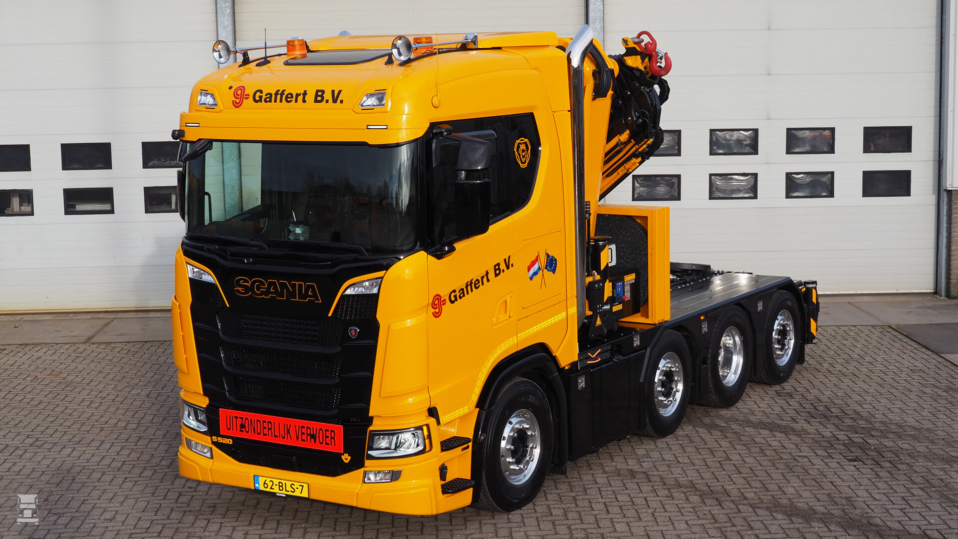 Gaffert Veghel heeft een bijzonder compact gebouwde Scania S520 8x2 in gebruik genomen. De bijzonder wendbare truck is voorzien van een 85 Ton/meter sterke HMF autolaadkraan met een bereik van 16,8 meter. De Scania S cabine is voorzien van de standaard dakhoogte.