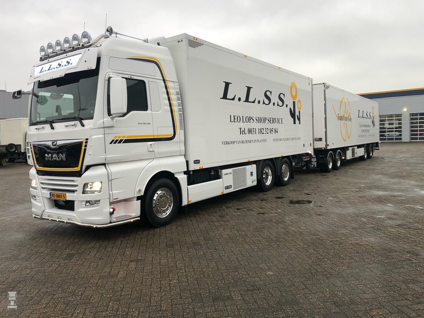 Bloemenvervoerder LLSS uit Bergambacht heeft onlangs uit handen van Heiwo een nieuwe LZV in gebruik genomen. Op een MAN TGX 26.510 6x2 motorwagen bouwde Heiwo de gewenste carrosserie. Verder leverde Heiwo een dolly en een twee-assige oplegger.