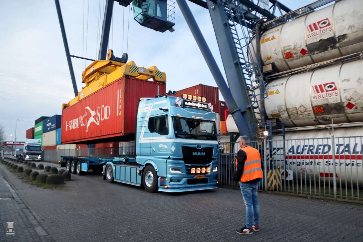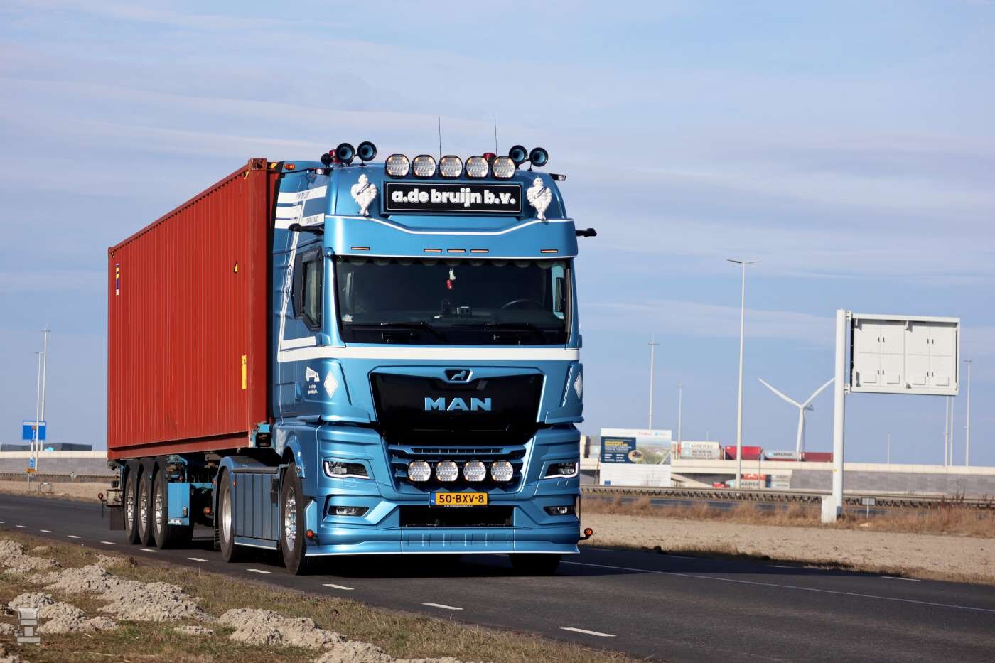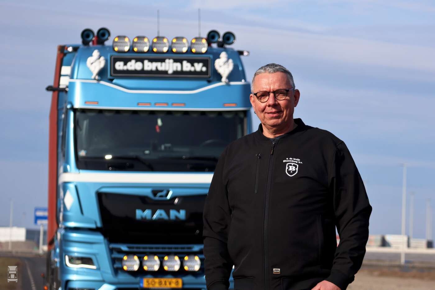 ''De blauwe kleur is eigenlijk een DAF kleur'' aldus Adrie, Het is al jaren de bedrijfskleur van A. de Bruijn BV, het bedrijf dat Adrie samen met zijn zwager leidt. De MAN is opgebouwd door TSW uit Werkendam en is geïnspireerd op de Dutch Commander. Hoe dan ook, de MAN ziet er bijzonder fraai uit en bevalt Adrie uitstekend.