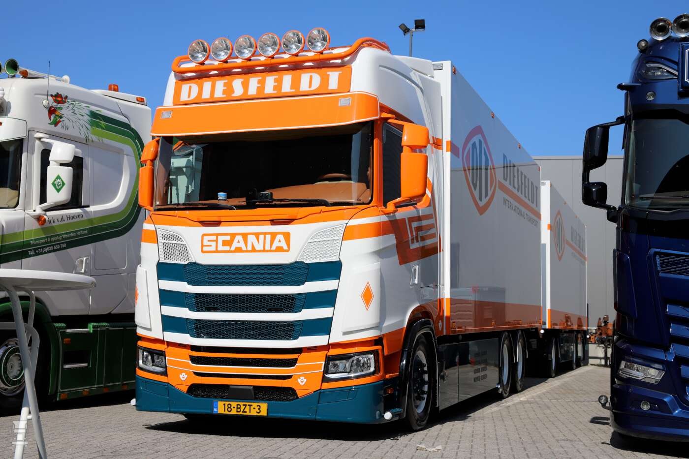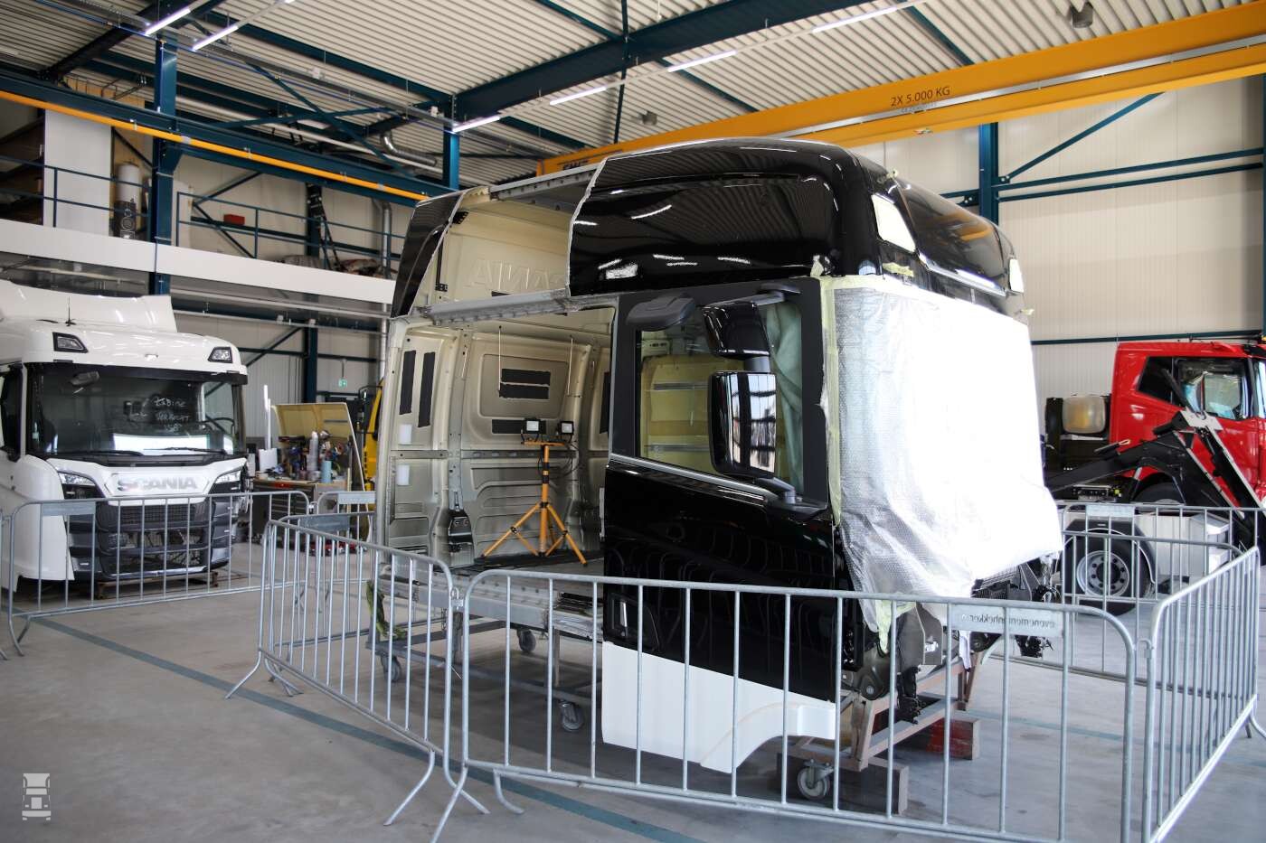 Van Winkoop had behoorlijk uitgepakt en in de werkplaatsen kon het proces gevolgd worden van allerlei specialismes van dit bedrijf. Zo was er een verlengde Scania cabine te zien in ruwbouw, waarbij één zijkant nog open lag. Leuk om te zien hoe die mannen dat doen daar in Ermelo. En verder? Heel veel dikke trucks, zowel oud als nieuw.