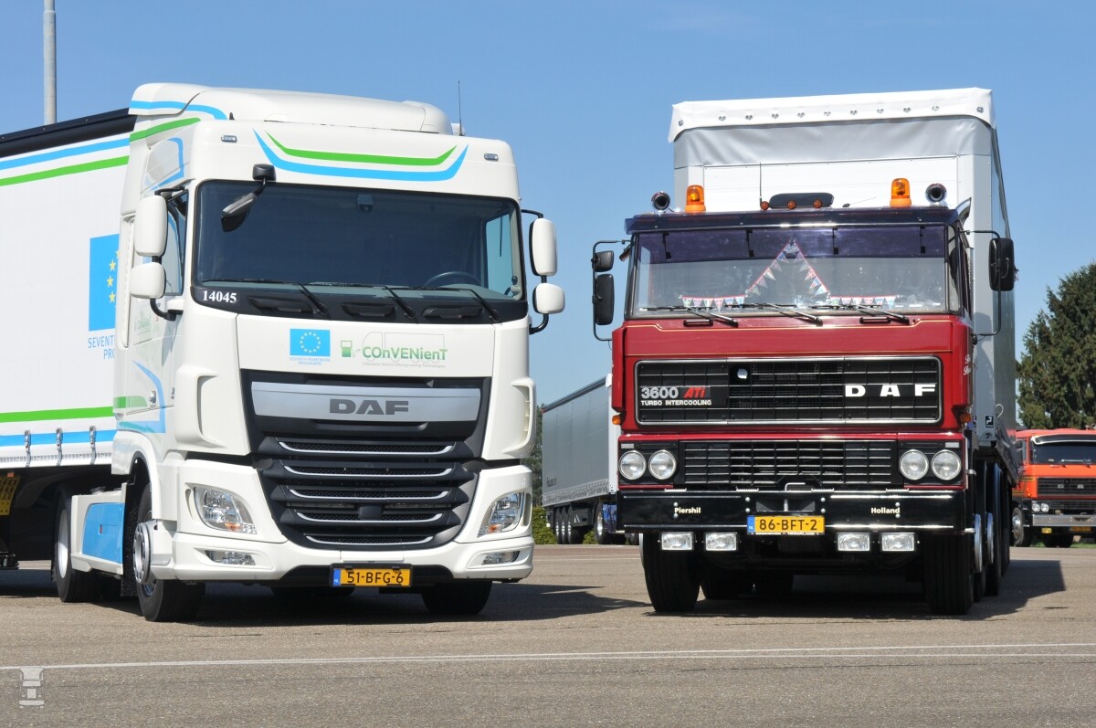 Op van mijn eerste reizen was ik onderweg met een minder sterke variant, de 2800, maar dan wel met hoge cabine, de Space Cab, van Barneveld naar Moskou. Weer in hetzelfde type cabine stappen doet een mens beseffen dat hij ouder wordt. Maar dan valt alles toch een beetje op zijn plek, zeg maar. Het schakelen gaat echter toch niet te makkelijk, omdat drie, vijf en zeven toch behoorlijk dicht bij elkaar liggen. Maar ook dit went, en met het bekende geluid, dat veel nadrukkelijker aanwezig is dan nu in de XF-tijd, brullen we met een gangetje van 70 km/h over de testbaan. Het is niet meer goed voor te stellen, maar met deze cabine toonde DAF zich een ware pionier waar het een grote werk- en leefruimte betrof voor de chauffeur, waarin hij ook fatsoenlijk kon overnachten en rusten. Eigenlijk schiet me alleen de Globetrotter cabine van Volvo te binnen die hier mee kon wedijveren en die DAF destijds aftroefde door als eerste met airco te komen.