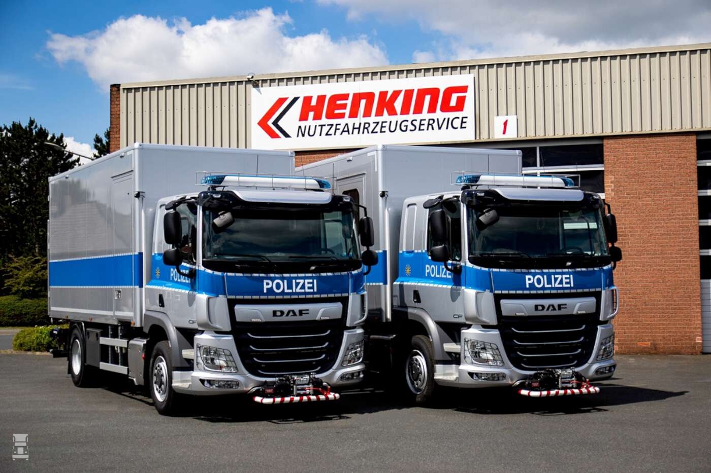 De Duitse politie heeft twee DAF CF 4x4 bakwagens aangeschaft voor speciale inzet bij calamiteiten. De opbouw van de trucks kan gebruikt worden als kleedruimte, maar ook voor het vervoer van benodigde materialen of gereedschappen bij speciale inzet.