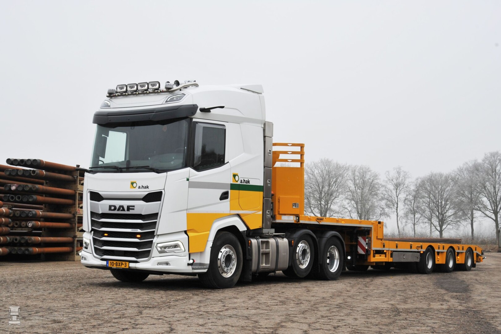 A. Hak uit Veendam is een specialist in de aanleg van ondergrondse infrastructuur voor olie, gas, water en elektriciteit. Dit is een sector waar momenteel veel gaande is dankzij de energietransitie en de netcongestie. Om voorbereid op een drukke toekomst heeft A. Hak vier nieuwe vrachtwagens in gebruik genomen. Allemaal witte DAFs in de normale bedrijfskleuren, maar al vier totaal verschillend.