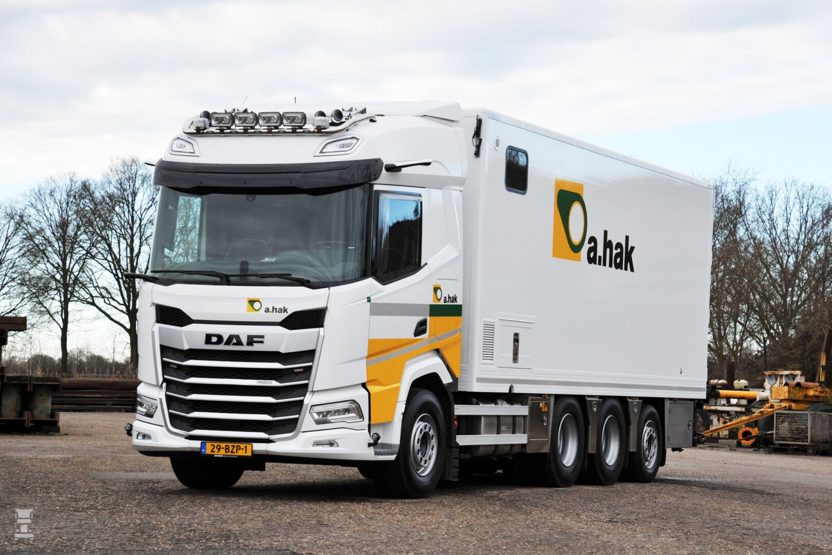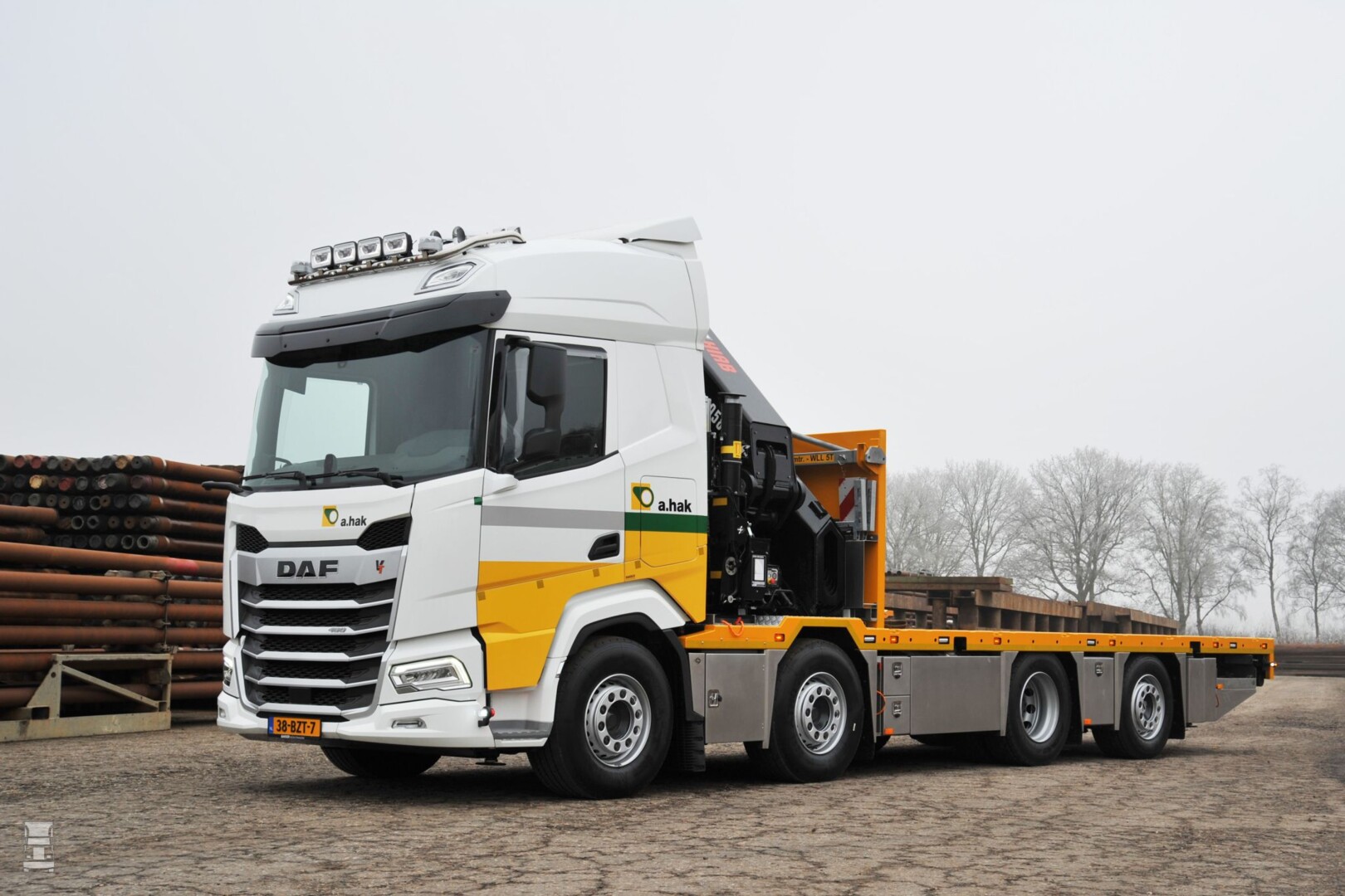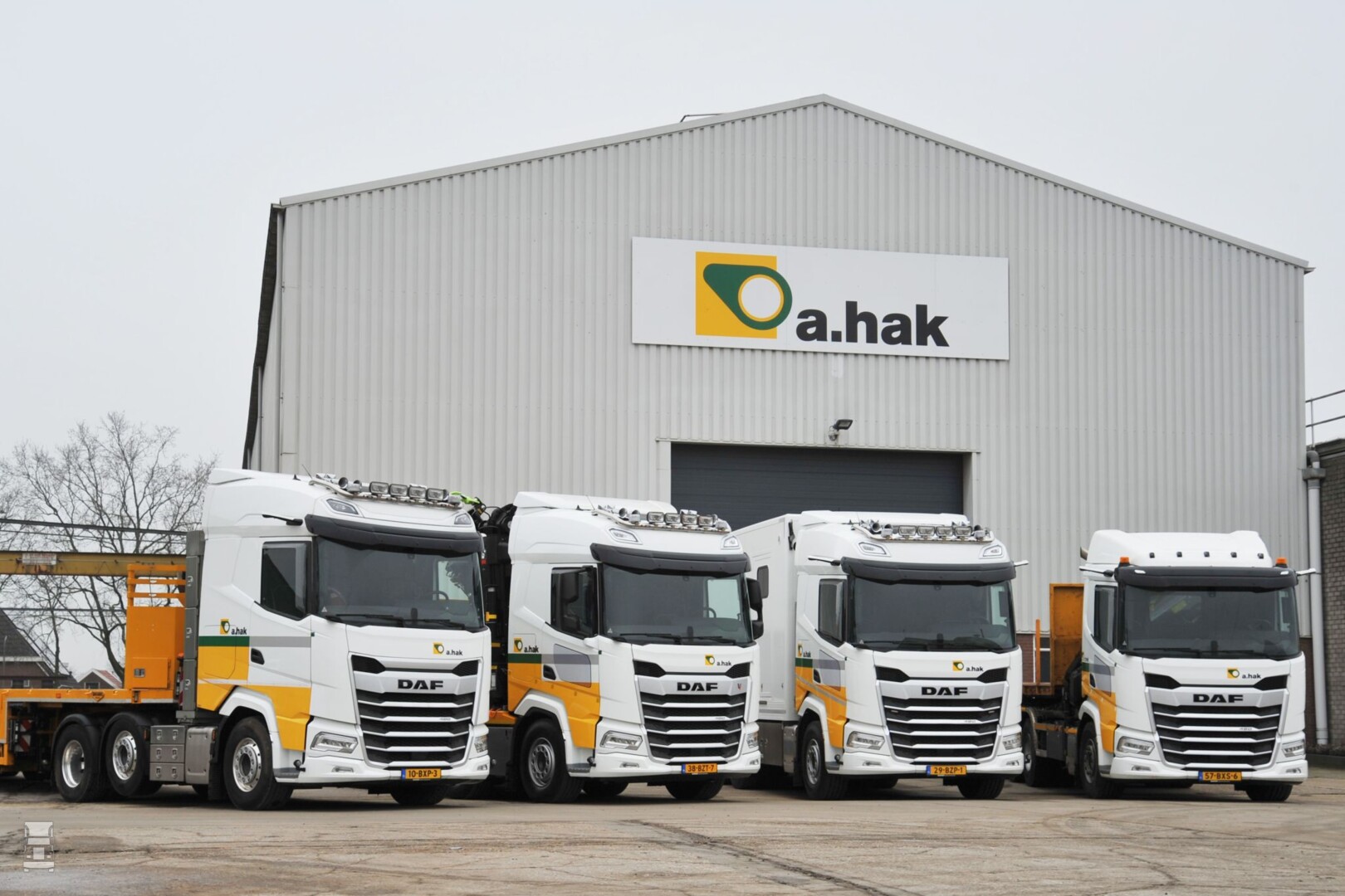 De kleinste is een DAF XD 6x2 die is voorzien van een open laadbak en een kraan. De andere drie DAFs zijn allemaal van het type XF. Twee zijn er uitgevoerd als 8x4, echter die zijn ook verschillend. De ene kreeg namelijk een kraan en een haakarmsysteem, terwijl de andere een gesloten laadbak met speciale inrichting kreeg. De vierde DAF tenslotte is een 8x2 die voorzien werd van een open laadbak en een kraan.
