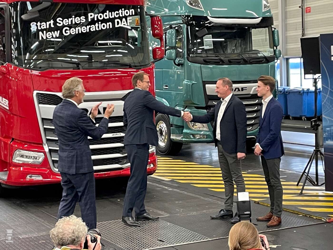 Bij DAF Trucks is vandaag de serieproductie van de nieuwe generatie trucks van start gegaan. Burgemeester John Jorritsma reed samen met DAF Trucks President Directeur Harry Wolters de eerste truck van de nieuwe generatie van de band.