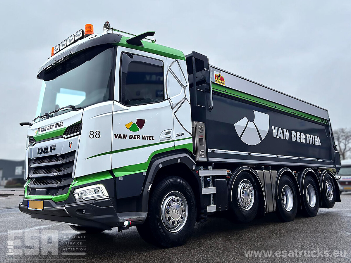 Veldhuizen Trucks bouwde een tien tons tweede as onder de DAF De truck werd geleverd door ESA Trucks in Drachten. De truck werd geleverd met de sterkste motor van DAF, de MX 13 met 530 pk. Verder is de truck voorzien van het Corner Eye camera systeem en het DAF Digital Vision camera systeem in plaats van spiegels. Verder is de truck uitgevoerd met een overdruk cabine en een Hyva kipperopbouw. De DAF werd door ESA gespoten in de nieuwe huisstijl van Van der Wiel. Een setje daklampen met luchthoorns maakt het plaatje af.