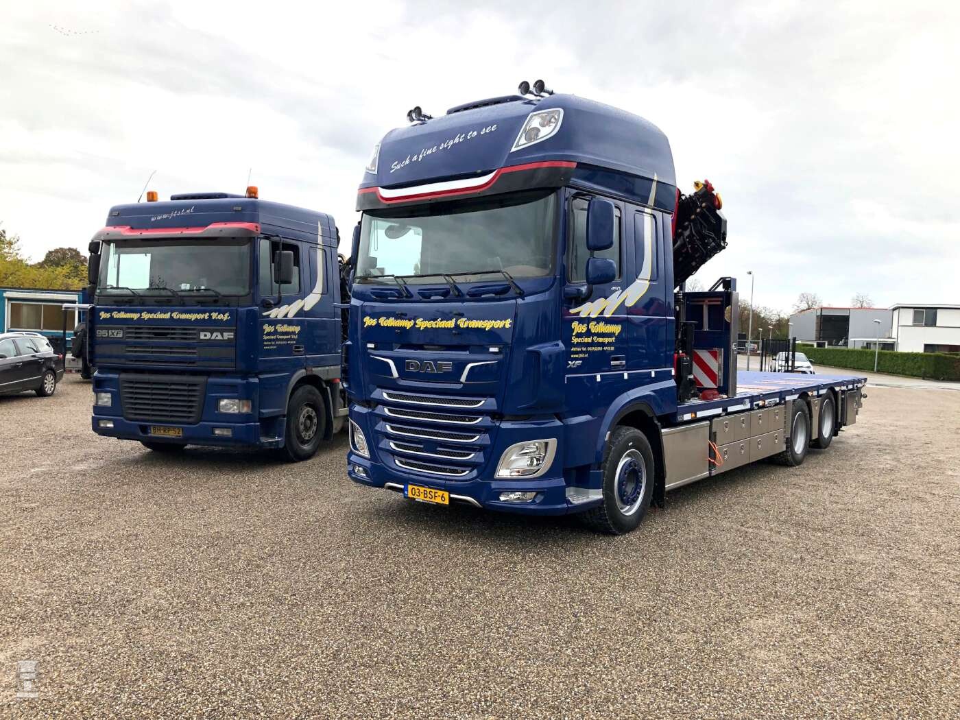 De nieuwe DAF vervangt een 22 jaar oud exemplaar dat tot de dag van vandaag gewoon zijn werk doet. Zo kwam hij toen deze foto's gemaakt werden net terug uit Spanje. De nieuwe XF is voorzien van het Ultimated pakket met onder meer alle veiligheidsystemen, een achteruitrij camera en het Corner Eye systeem dat voldoet aan de Direct Vision regels voor Engeland. De opbouw van de autolaadkraan en de laadbak werden verzorgd door CCH in Halsteren. Vaste chauffeur op de nieuwe DAF is Jos Hartjes.
