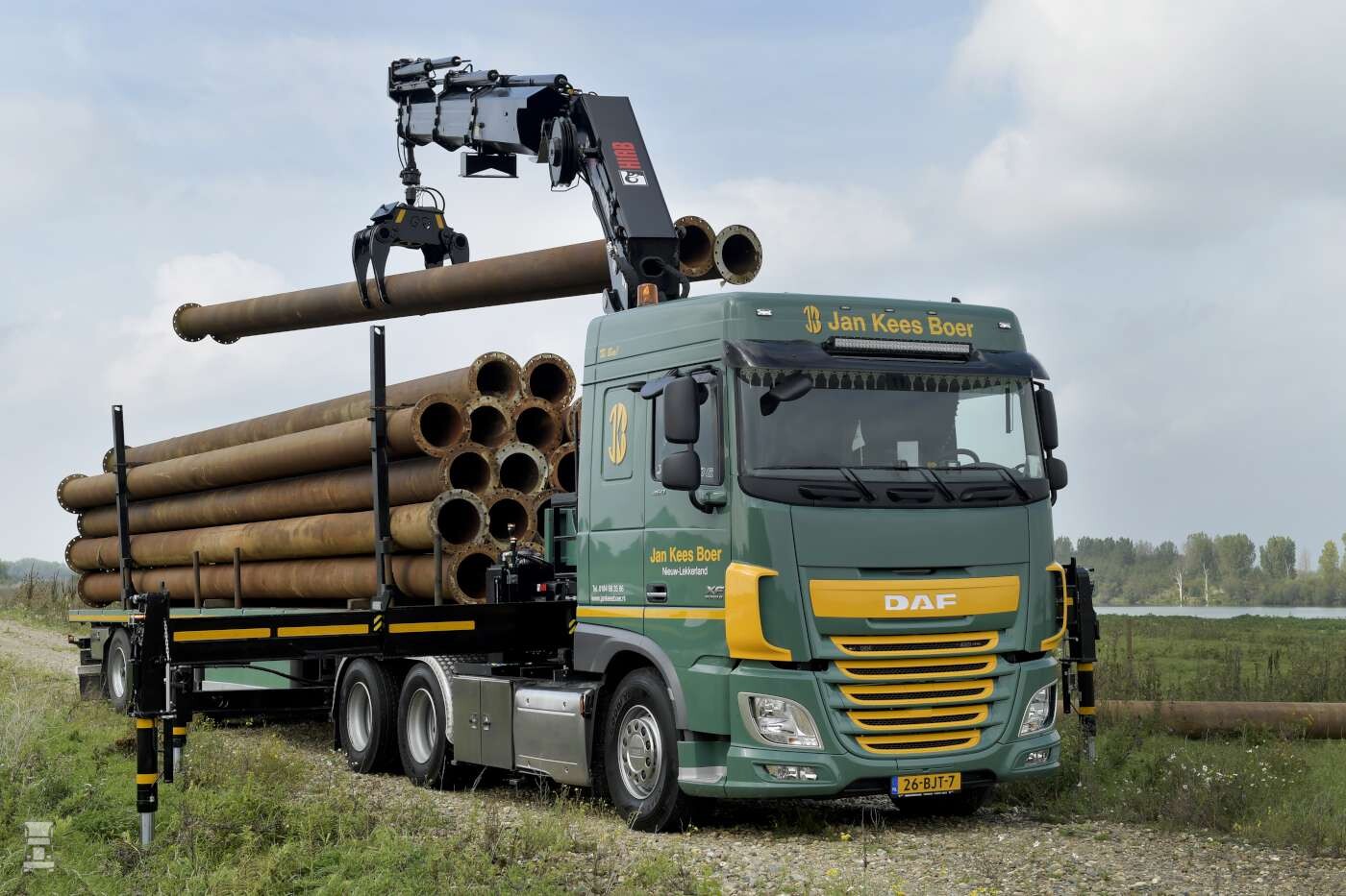 Jan Kees Boer Transport B.V. in Nieuw-Lekkerland heeft een indrukwekkende DAF XF 460 FTS in gebruik genomen. De trekker heeft een opbouw met een zware autolaadkraan en is bovendien geschikt voor zwaar transport tot 72 ton.