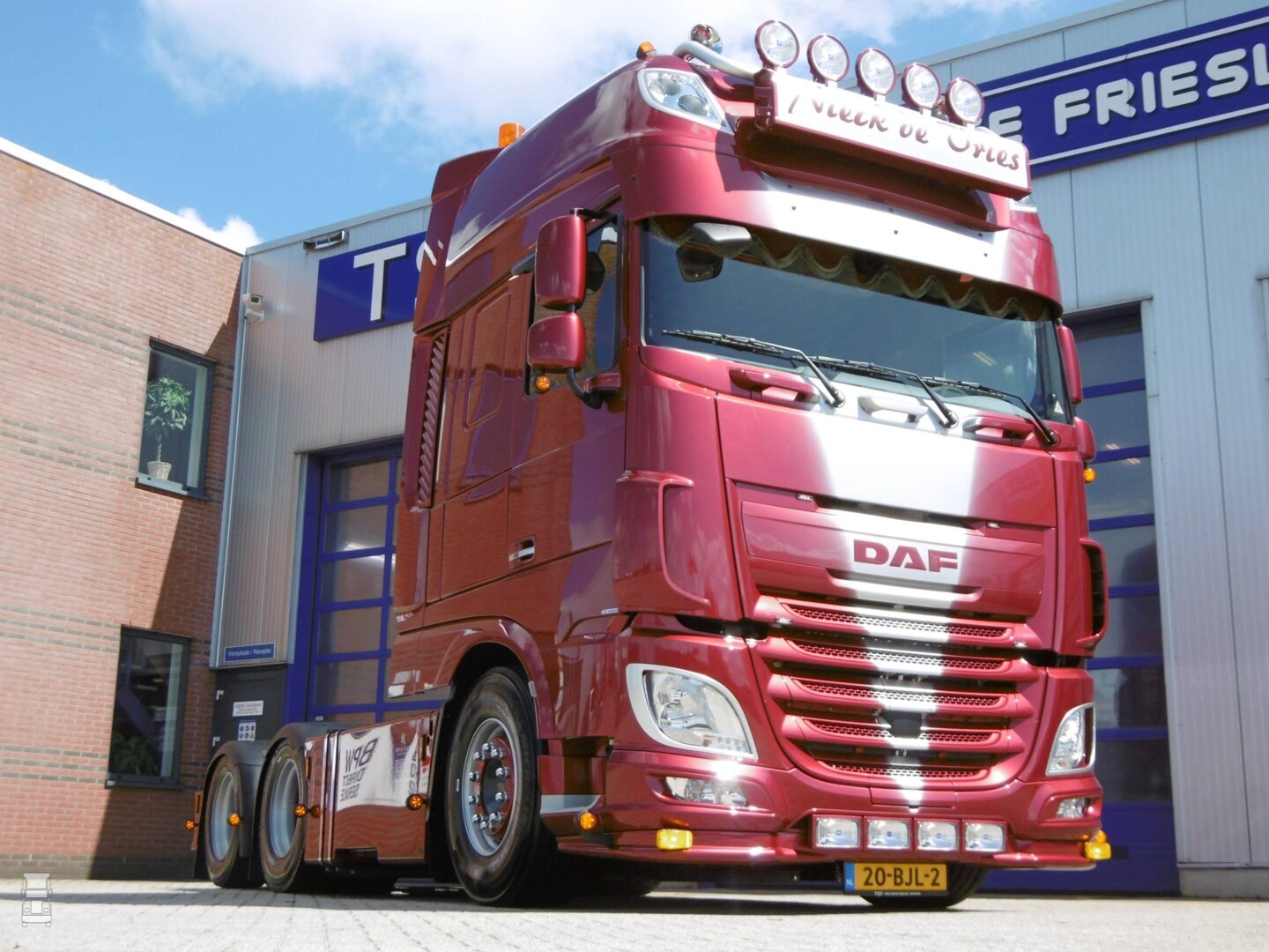 Truck Service Friesland in Heerenveen, kortweg TSF genaamd, heeft een hele dikke DAF XF.510 FTS Super Space Cab afgeleverd aan Nieck de Vries. Die letters FTS staat voor sleepas- trekker, en dat ziet er gewoon dik uit!
