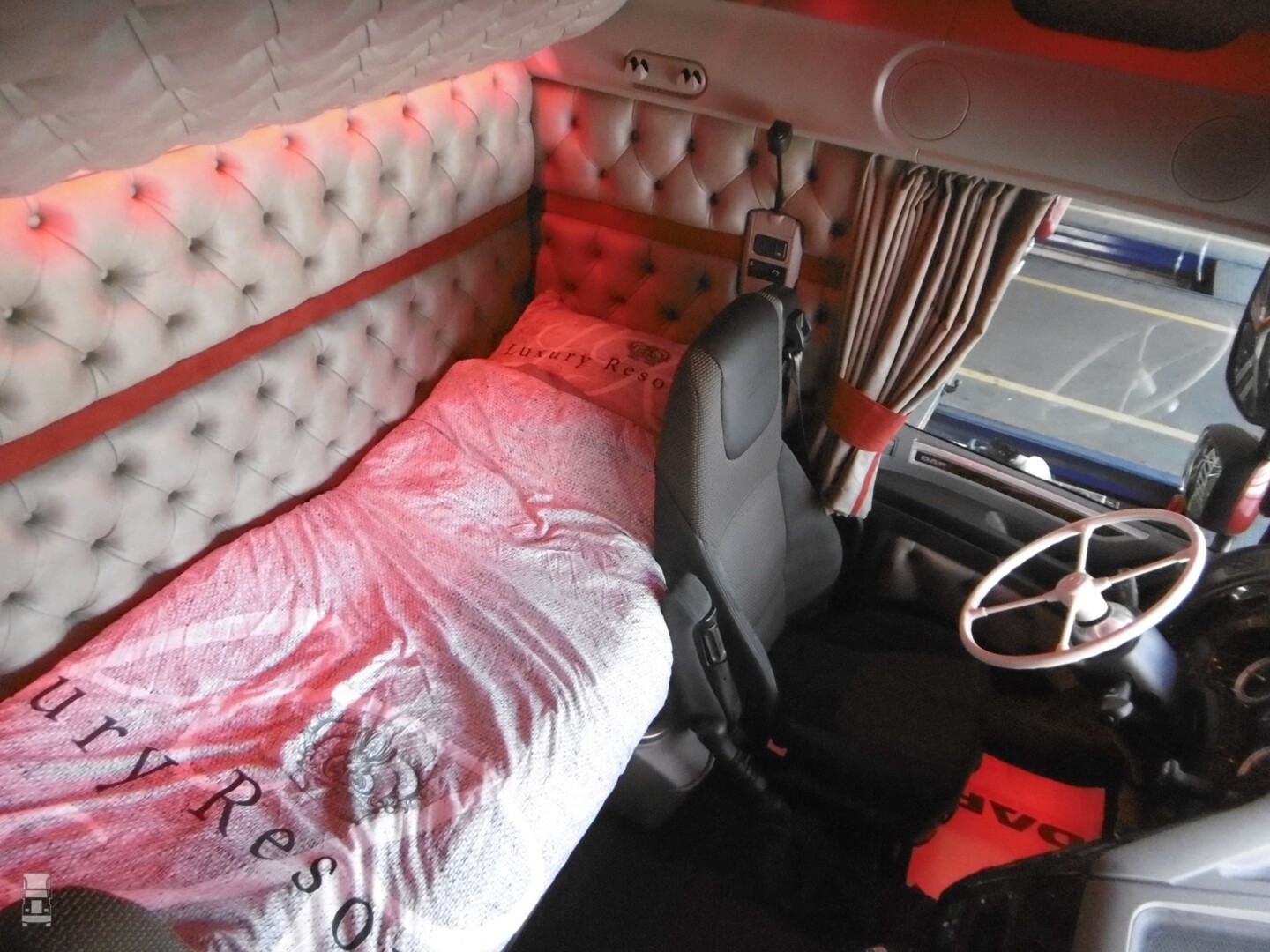 Binnen het dealerbedrijf werd de trekker omschreven als 'een pronkje' en dat is Fries voor een pronkstuk. Daar is geen woord aan gelogen want er is niks aan het toeval overgelaten bij deze trekker. De truck is voorzien van een 16-gangen handgeschakelde ZF versnellingsbak met intarder. Het voertuig is uiteraard voorzien van de nieuwste de verplichte en uitermate doeltreffende systemen als AEBS, ACC, LDWS. Voor het gemak van de berijder zit er een Truckphone in waarmee de smartphone via bluetooth aan gekoppeld kan worden.