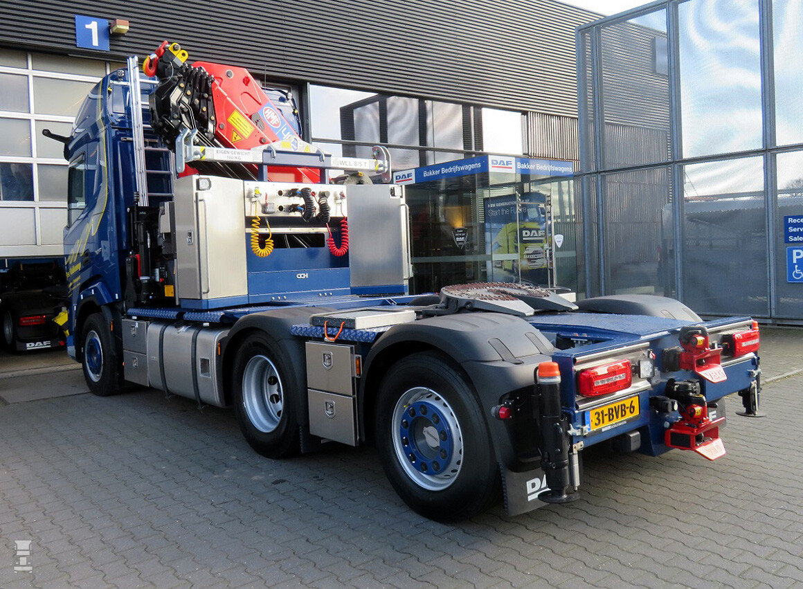Om het voertuig technisch goed uit te kunnen nutten, is gekozen voor een 10 tons vooras, een 11.5T aangedreven as en als laatste een widespread, gestuurde en liftbare 10T sleepas. Het voertuig werd af fabriek geleverd door DAF, waarna hij bij Veldhuizen Trucks omgebouwd werd tot een voertuig met een GVW van 31.5T. Veldhuizen leverde en monteerde luchtvering op de vooras en plaatste tevens de achteras naar achteren om een widespread opstelling te behalen.