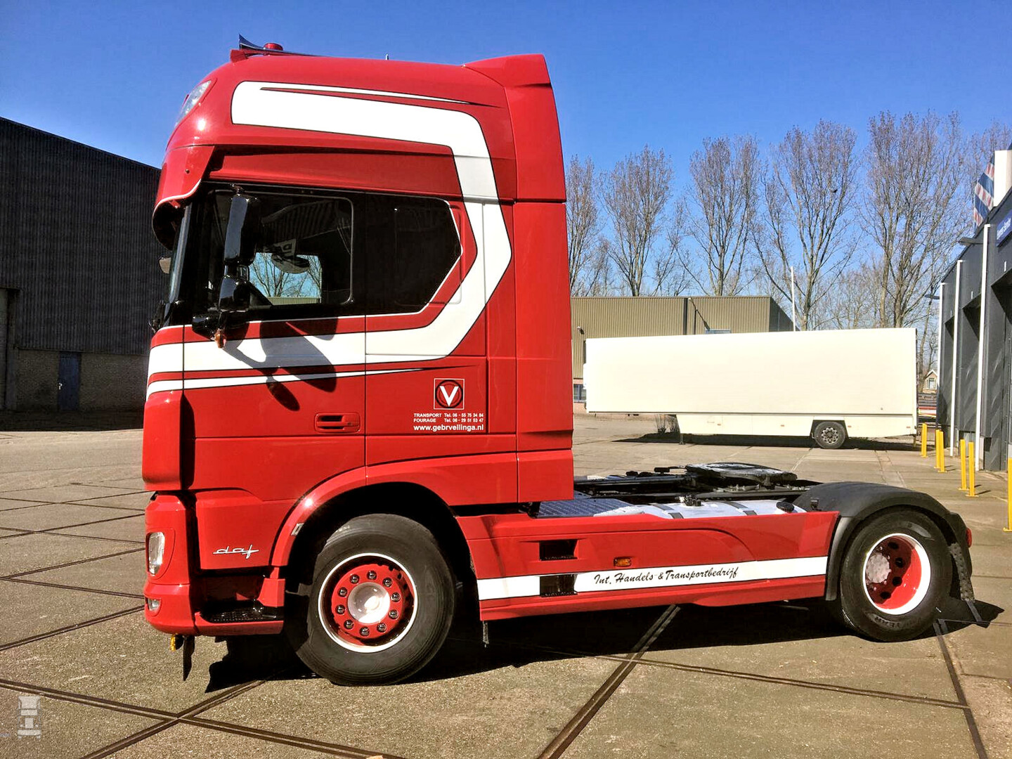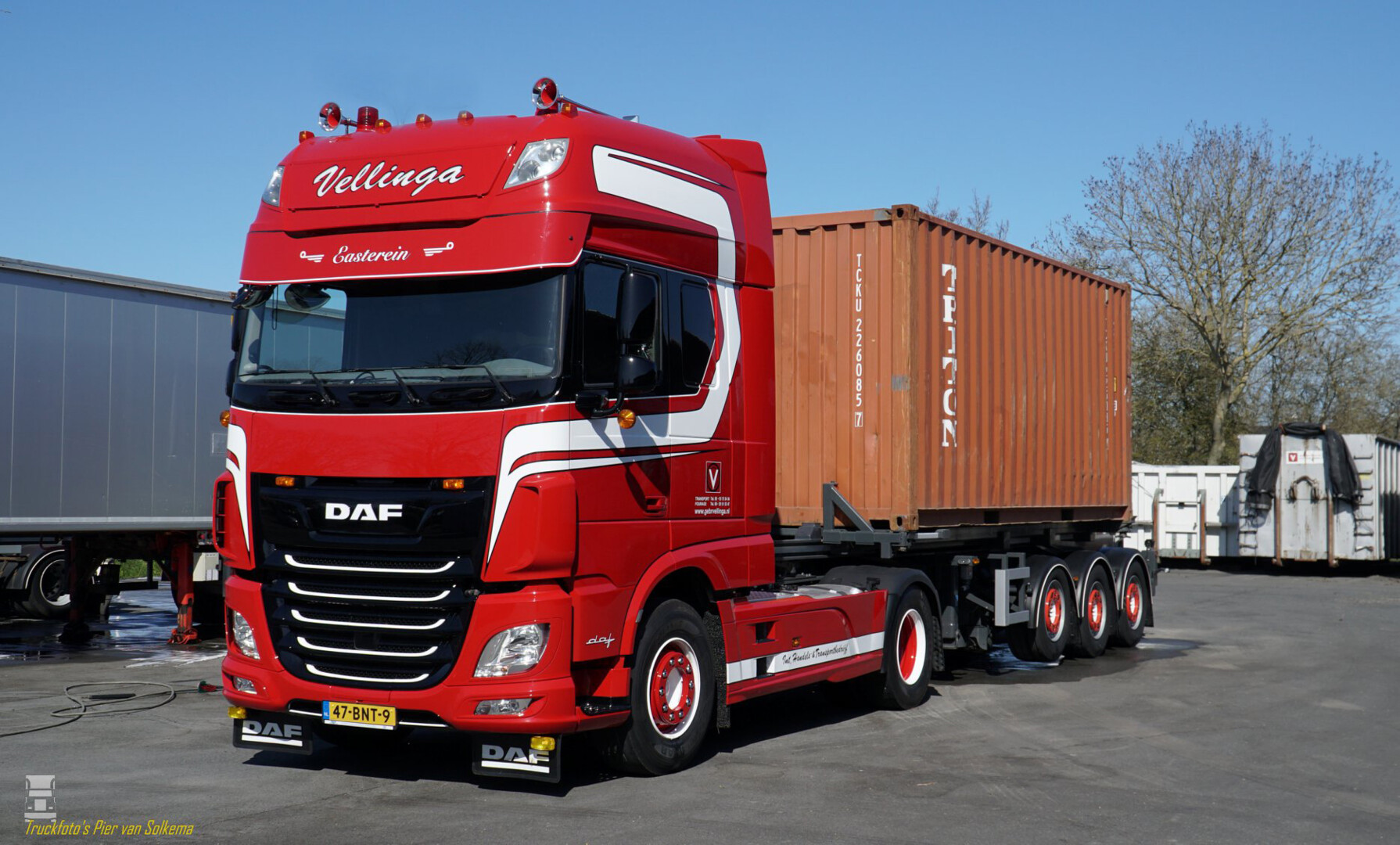 Vellinga BV uit het Friese Easterein heeft een fraaie DAF XF 460 Super Space Cab in gebruik genomen. De DAF is voorzien van een nieuw kleurenpatroon op de cabine maar de huisstijl van Vellinga is nog duidelijk herkenbaar. Met name het zwart rondom de raampartij zorgt voor een opvallend uiterlijk van deze truck.