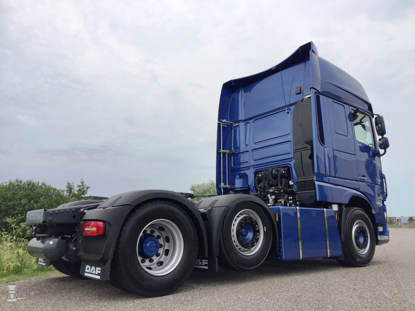 Henry koos voor de 'International Truck of the Year 2018' in de nieuwste uitvoering. De chassisaanduiding die DAF hanteert voor zo'n 6x2 trekker is FTG, en dat staat voor een voorloopas trekker. De truck is uitgerust met de MX13 motor in 480 pk uitvoering. Dat momenteel het 'broodje van de bakker' bij DAF en de eerste ervaringen die wij oppikken zijn erg goed met deze uitvoering. Henry koos voor de ruime Super Space Cab met skylights, extra grote brandstoftanks en uiteraard een PTO-installatie voor de kipperoplegger. Verder hield hij het erg rustig want afgezien van een paar extra lampjes en luchthoorns is het gewoon een strakke auto. Met de in kleur gespoten grille en zonneklep ziet de DAF er toch bijzonder stoer uit.