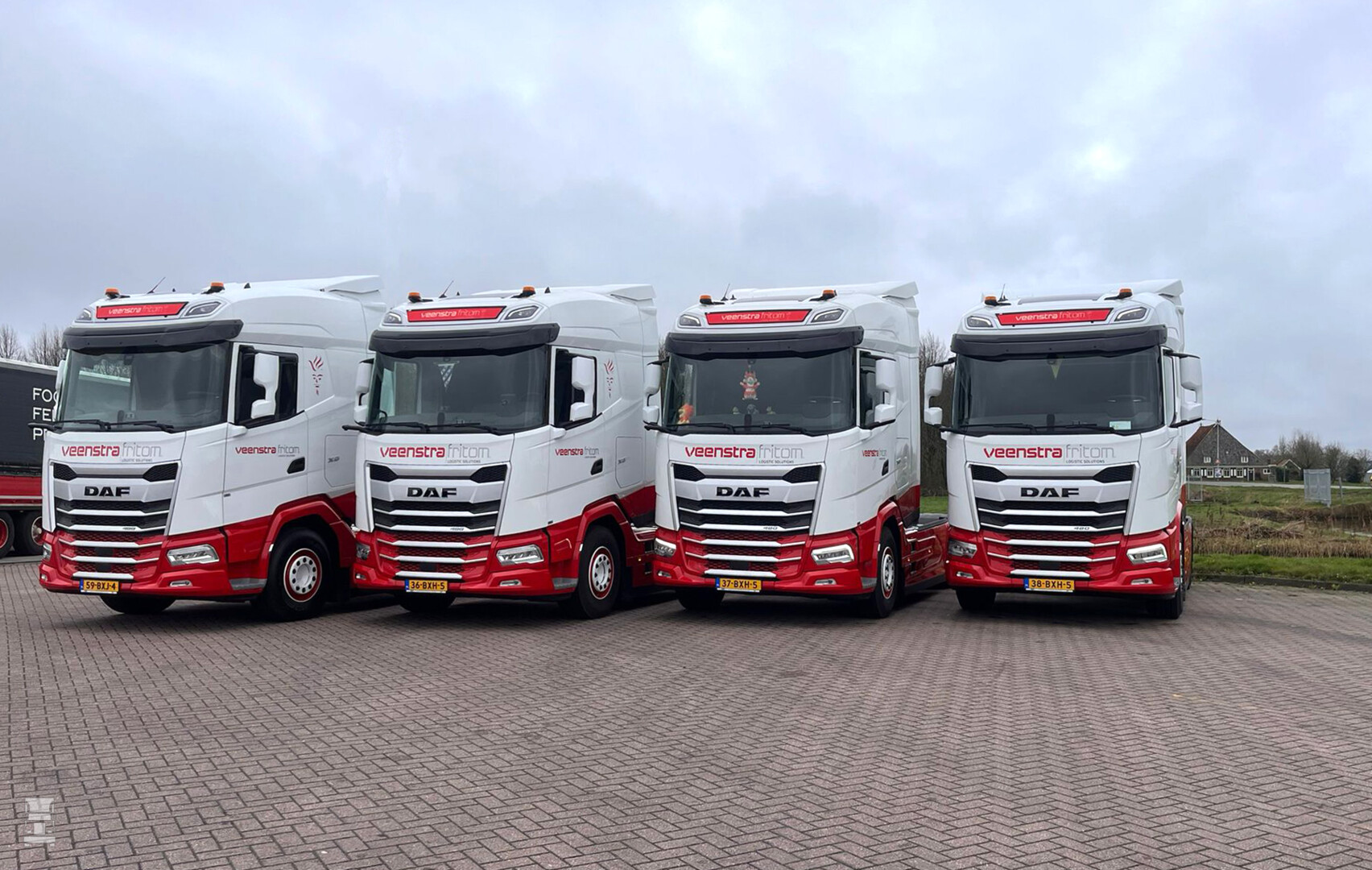 De totale vloot van Veenstra|Fritom in Heeg omvat 72 trekkende eenheden. Die trucks worden zowel nationaal als internationaal ingezet. De nieuwe DAF trekkers rijden vooral internationaal, op landen als Frankrijk, Italië, Oostenrijk en Zwitserland. Daarbij komen de ruime XG cabines goed tot hun recht, want de chauffeurs zijn vaak de hele week van huis. ,,De chauffeurs zijn erg te spreken over het comfort en de ruimte in de nieuwe DAF’s. Veenstra: ,,Met deze, extra lange cabines heeft dit merk echt weer de lat hoger gelegd voor wat betreft ruimte en comfort in de cabine. Dat is belangrijk in deze tijden van chauffeurs krapte. Een tevreden en uitgeruste chauffeur presteert gewoon beter, en dat is winst voor iedereen.’’