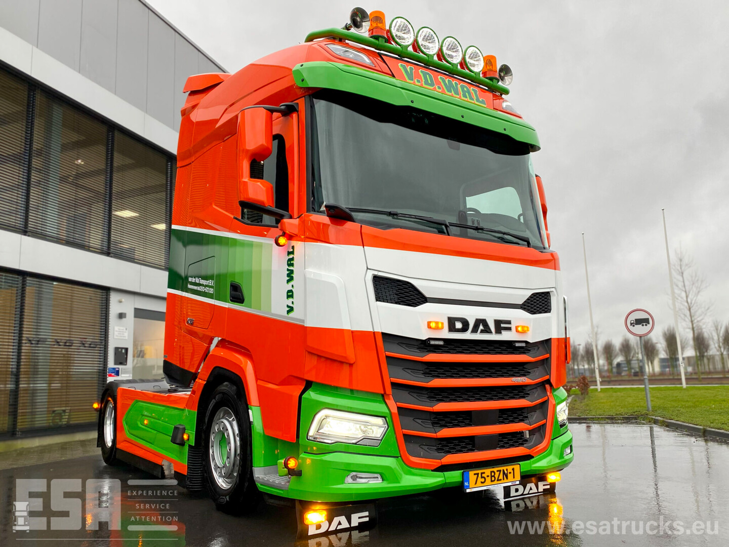 De, door ESA Trucks geleverde DAF XG is voorzien van een hydrauliekset voor het gebruik van kippertrailers. De trekker is voorzien van vele opties en is rondom luchtgeveerd. De frisse huisstijl van Van der Wal staat hem goed, en daarmee is het een opvallende verschijning geworden.