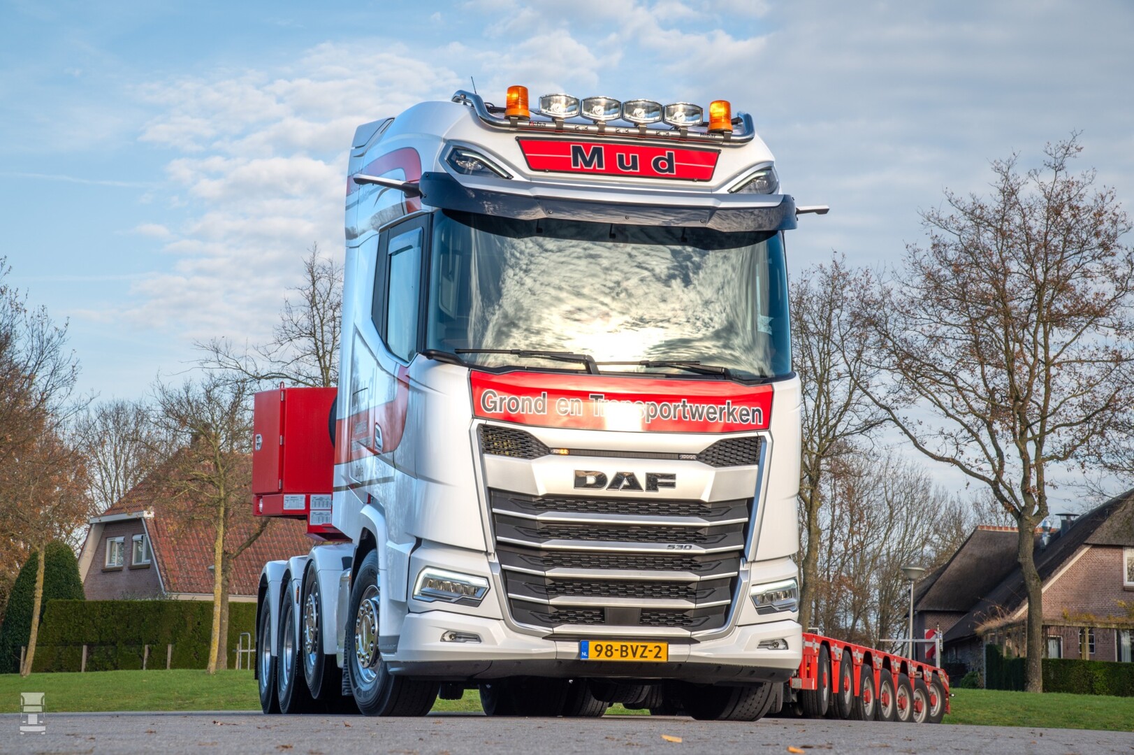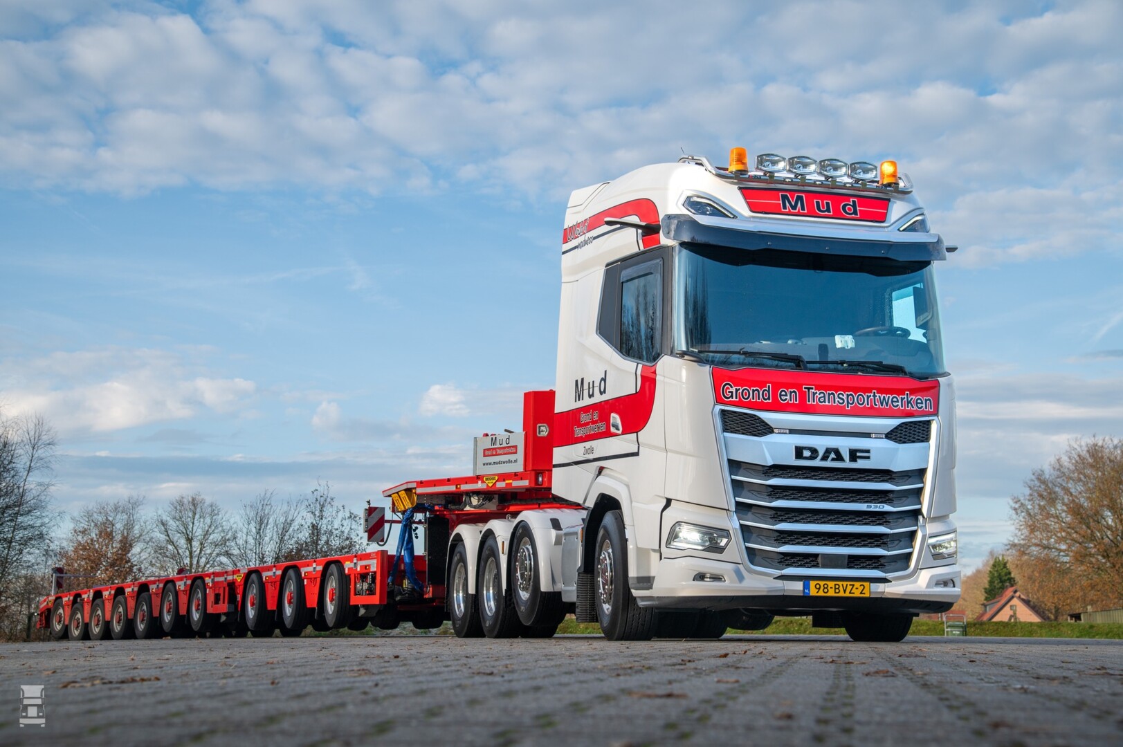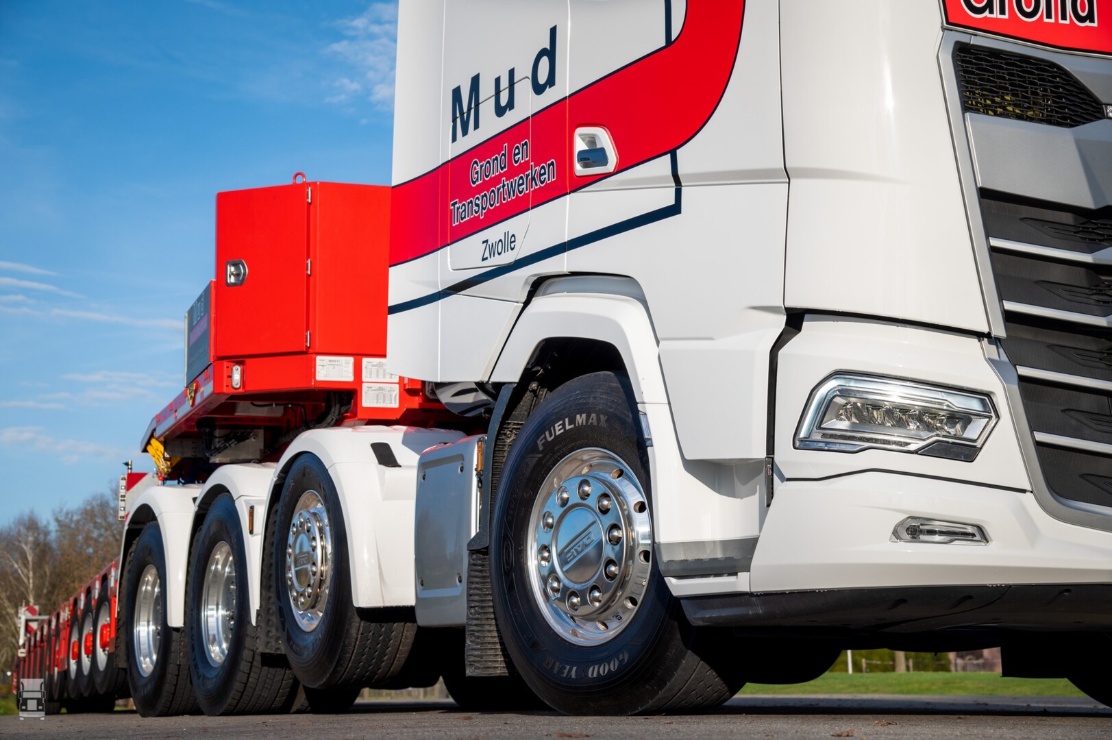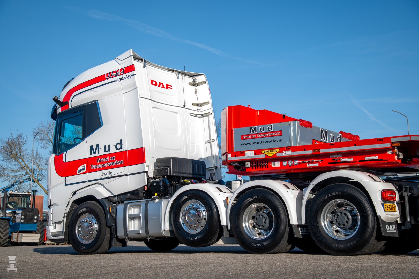 Mud Grond- en Transportwerken is een veelzijdig bedrijf dat zich keer op keer bewijst als dé specialist in grondverzet en transport, van koeltrailer tot zware diepladers. Overigens is de DAF een oude bekende van ons. Dit is namelijk de ex demo van DAF waar we eerder dit jaar mee reden. Klik hier voor dat verhaal, met een filmpje. Je herkent hem bijna niet, en die Mud kleuren staan hem goed!