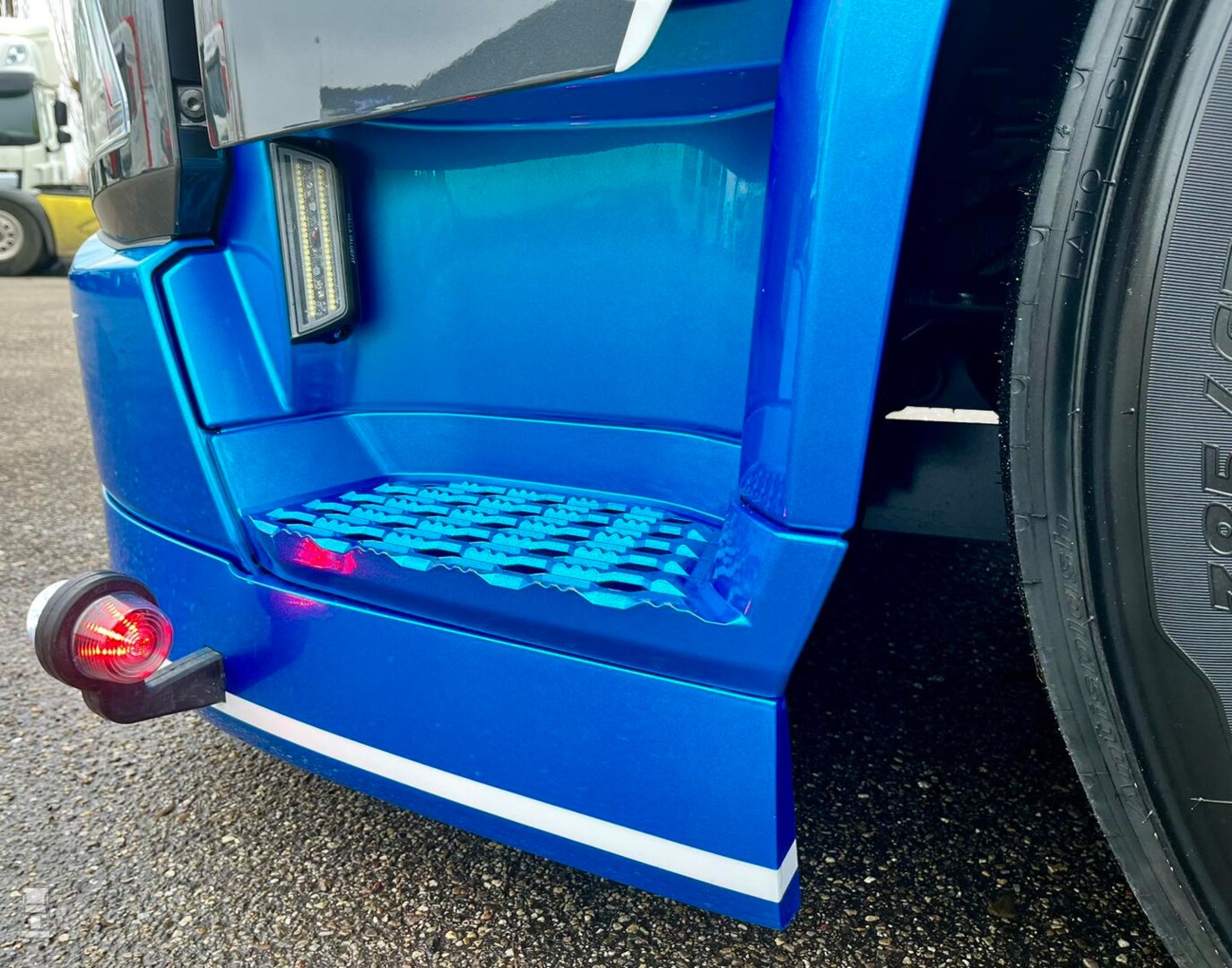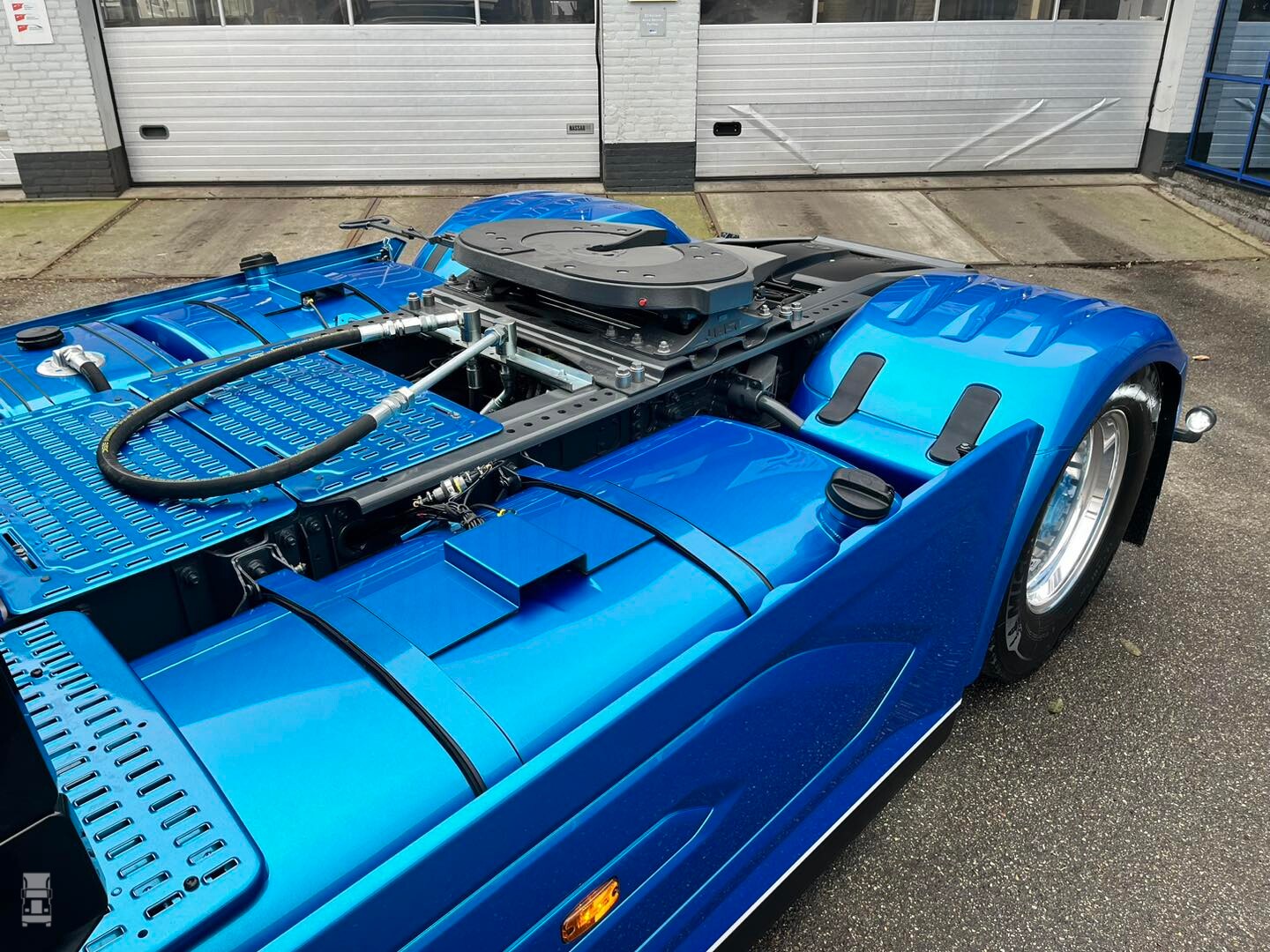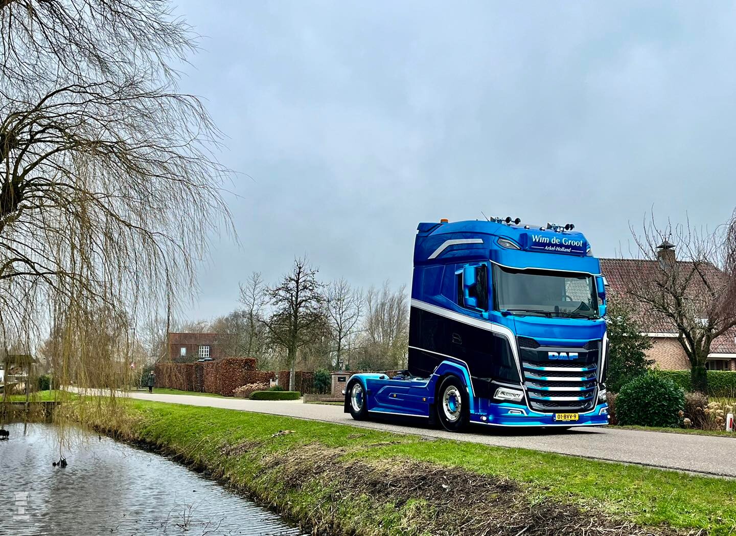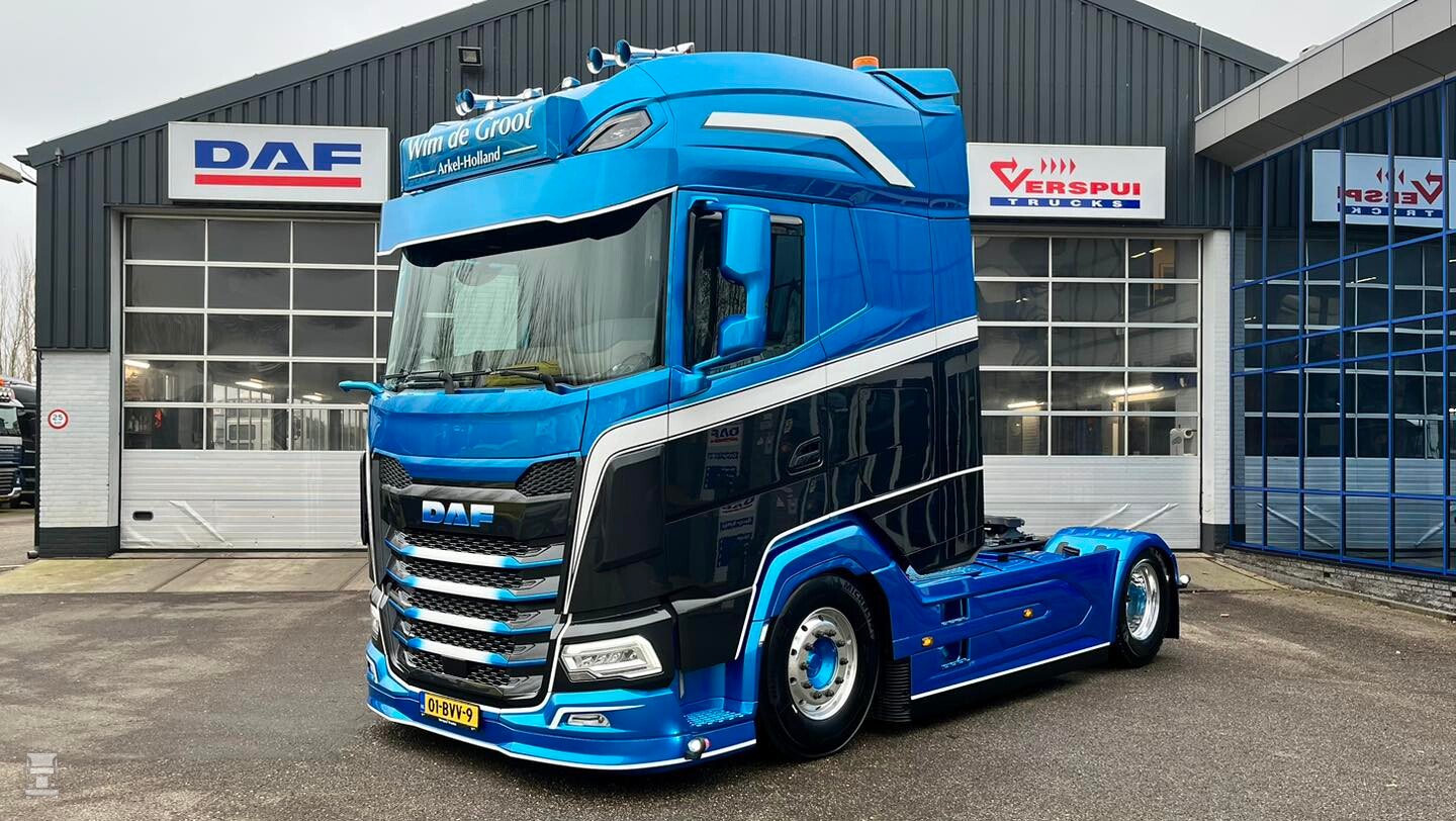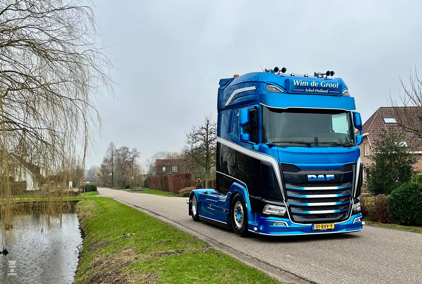 De truck werd tot in de puntjes afgewerkt en voorzien van breedtelichtjes, een extra onderspoiler, een verlengde zonneklep en windkapjes op de hoeken. Verder werd er een subtiele lichtbak opgebouwd, net als twee dubbele sets luchthoorns. Wim koos verder voor conventionele buitenspiegels, en dat staat de auto goed. Het fraaie spuitwerk, in drie kleuren en met diverse lagen blanke lak werd uitgevoerd door Dubbeldam Groep. Alles bij elkaar een hele fraaie DAF!