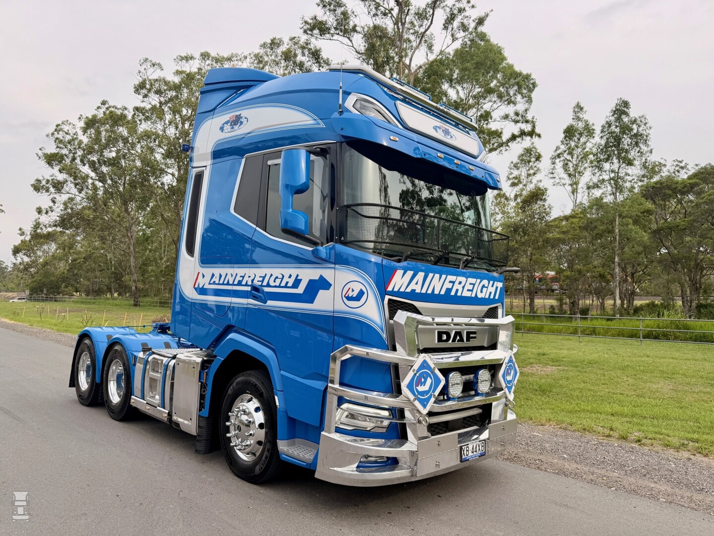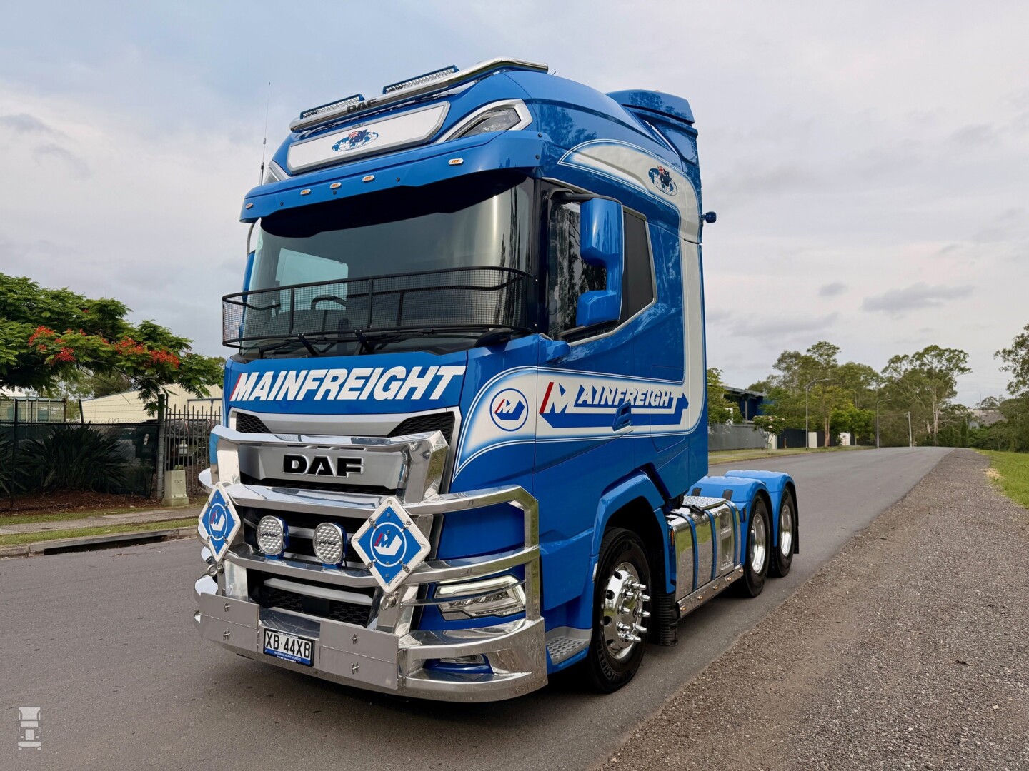 De Europese Mainfreight trucks zien er altijd op en top uit met hun frisse kleurstellingen, alleen ontbreekt in Europa steevast de zonneklep. In Australië zit die er wel gewoon op, en laten we eerlijk zijn: Dat staat eigenlijk altijd beter. Reden is dat de trucks in dat deel van de wereld vrijwel allemaal van sub- contractors zijn. In dit geval is het Patterson Logistics die charter rijdt voor Mainfreight.