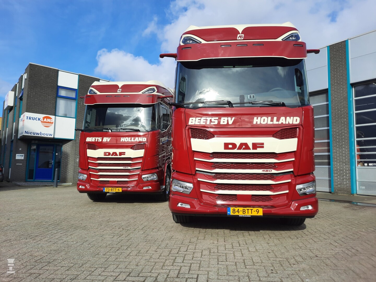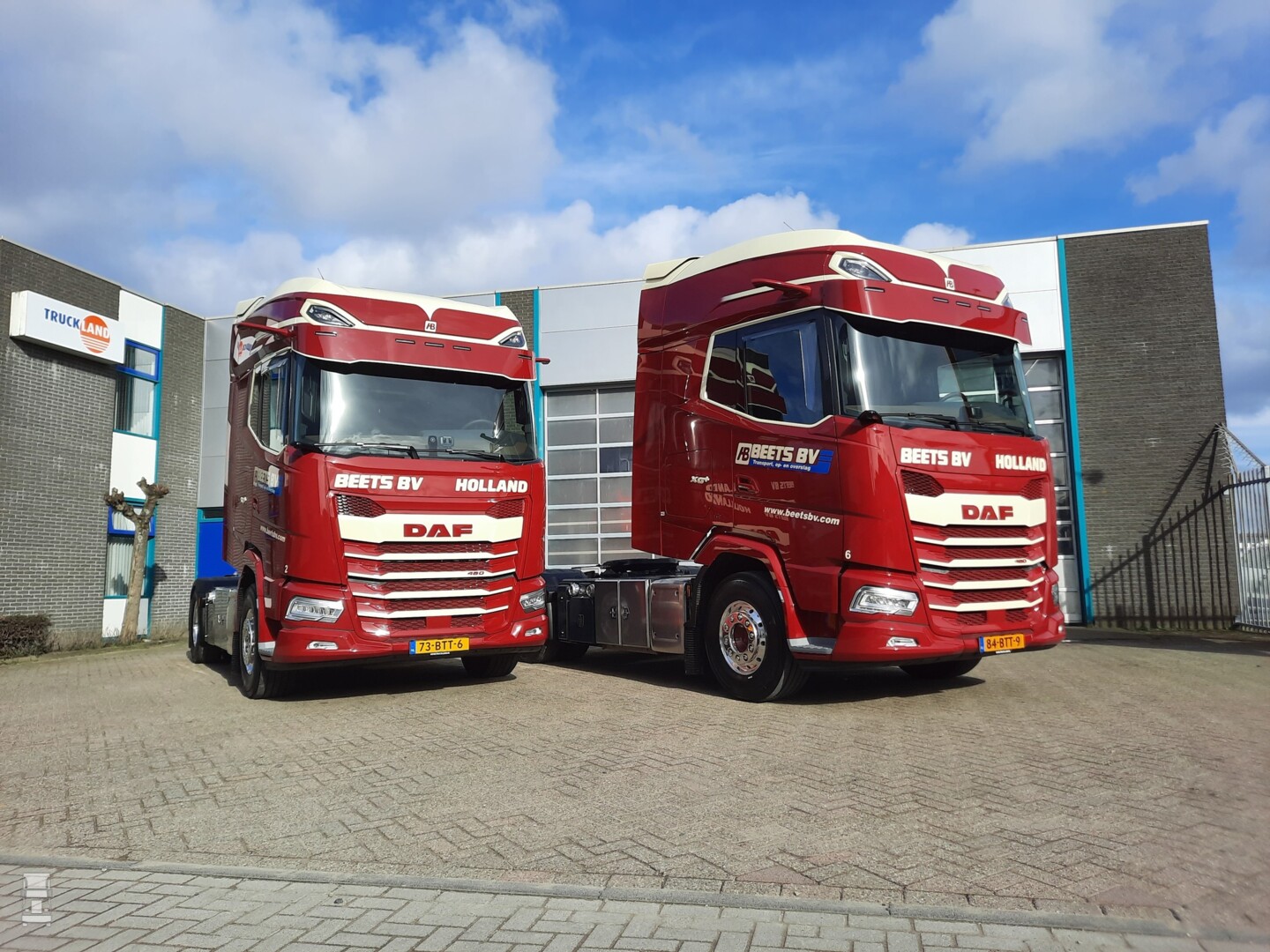 Verder zijn de trucks voorzien van een groot aantal opties, zoals een stuurwiel in leer, super Air stoelen, een koellade, een magnetron en het exclusieve infotainment pakket met navigatie. Verder zijn de trucks voorzien van gelaagd glas met zonnefolie, digitale camera spiegels en het DAF Cornereye systeem voor de dode hoek. Verder is er natuurlijk de predictive cruise control, geïntegreerde stand airconditioning en bandenspanningsbewaking. Een custom made zonneklep en een setje Alcoa Dura-Bright velgen maakt het plaatje compleet. De trucks werden afgeleverd door DAF Trucks dealer Truckland.