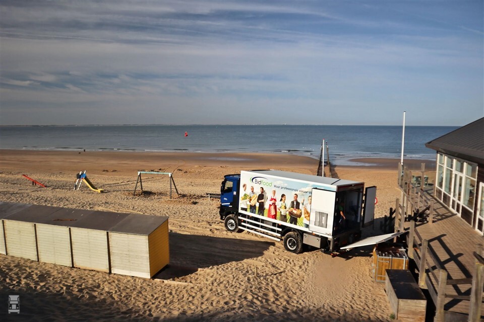 Voor ons magazine reden we een dagje mee met Kevin. We zoeken altijd interessante verhalen en een vrachtwagen die strandtenten bevoorraad is er zeker eentje van. Kevin rijdt sinds enkele jaren op een strandauto van Bidfood. Het rijden over het strand vindt deze Zeeuw helemaal het einde. Na een dagje meerijden kunnen wij ook niet anders concluderen: dit is echt heel leuk.