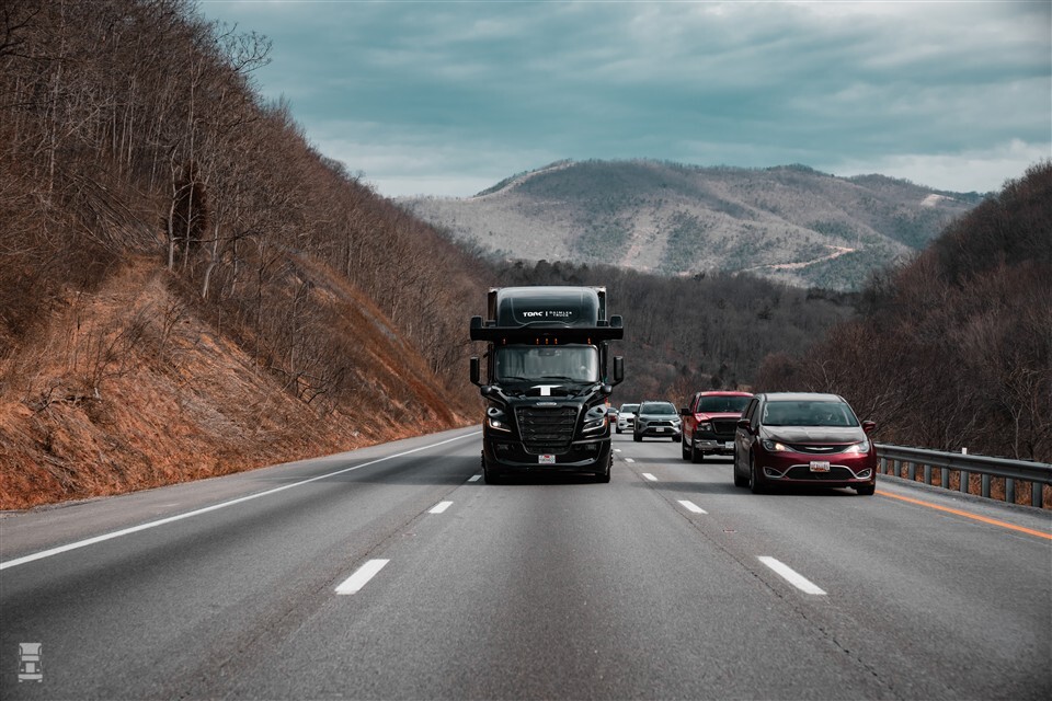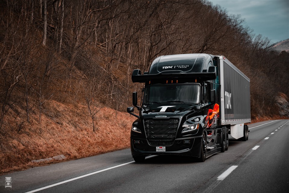 Daimler Truck North America stelde enkele exemplaren van de nieuwe generatie Cascadia ter beschikking. Deze Freightliner werd vorig jaar onthuld. Torc, een bedrijf dat ook onder Daimler Truck valt, heeft de vrachtwagen omgebouwd zodat hij autonoom kan rijden. Hiervoor zijn de veiligheidssystemen redundant gemaakt, wat betekent dat andere systemen het overnemen als er een systeem uit valt.