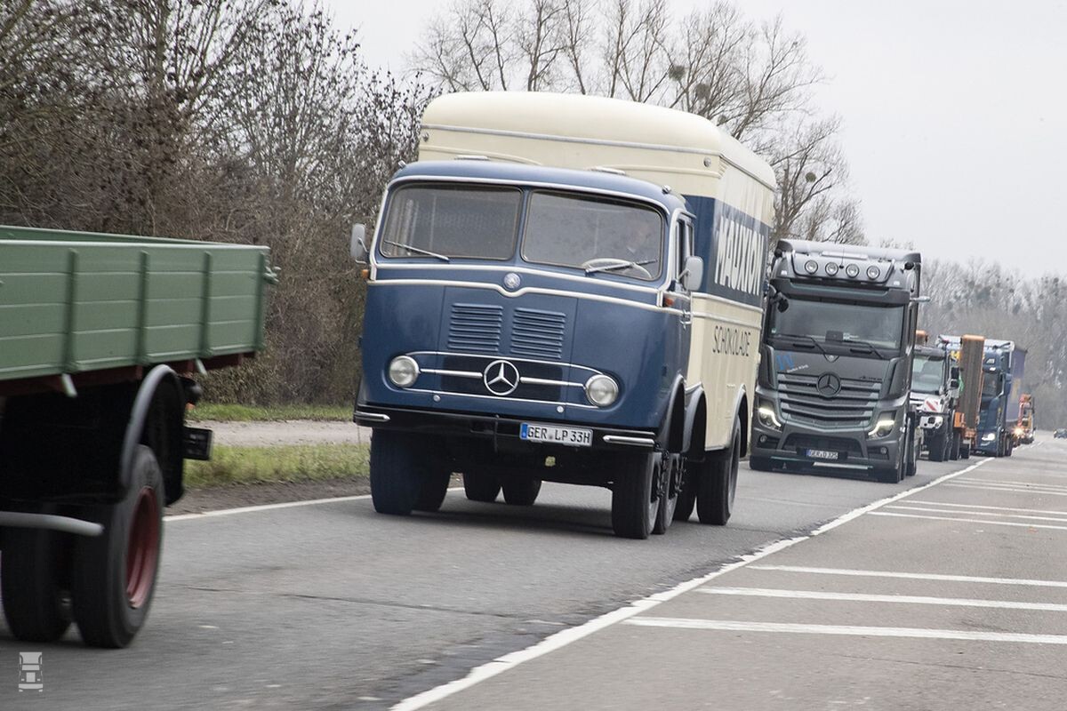 Op de foto’s zie je Mercedes LP 333 uit 1960 ‘duizendpoot’, en de LP 608, de eerste truck die in 1965 van de toen nieuwe fabriek in Wörth van de band kwam. Een keur aan moderne Actrossen en zelfs Unimogs werd voor de verhuizing ingezet.