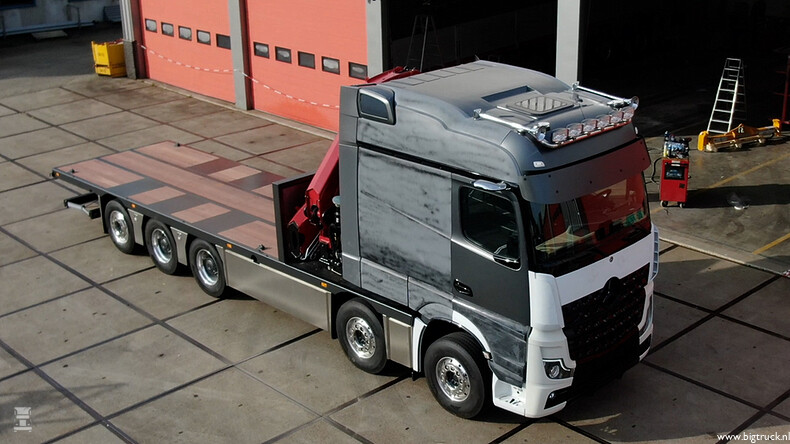 Na ruim 9 maanden bouwen begint de Mercedes Arocs van Bart Schmitz van PFM aardig zijn definitieve vorm te krijgen. En zijn we qua bouwen hiermee in de laatste fase beland. De cabine is verlengd, de laadbak en de kraan zijn opgebouwd zoals jullie in de vorige updates hebben kunnen zien.