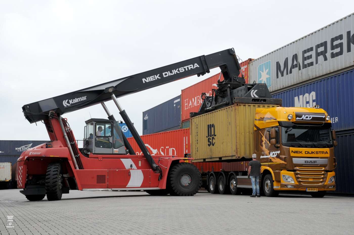 Niek Dijkstra uit Heerenveen heeft vorig jaar flink geinvesteerd. Opvallend zijn de twee fraaie DAF trucks in de Niek Dijkstra kleuren.