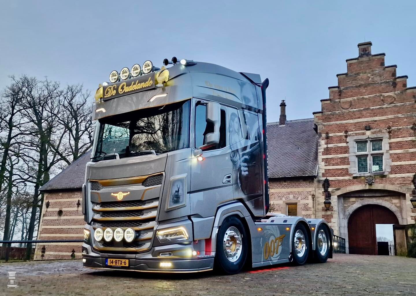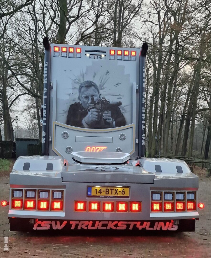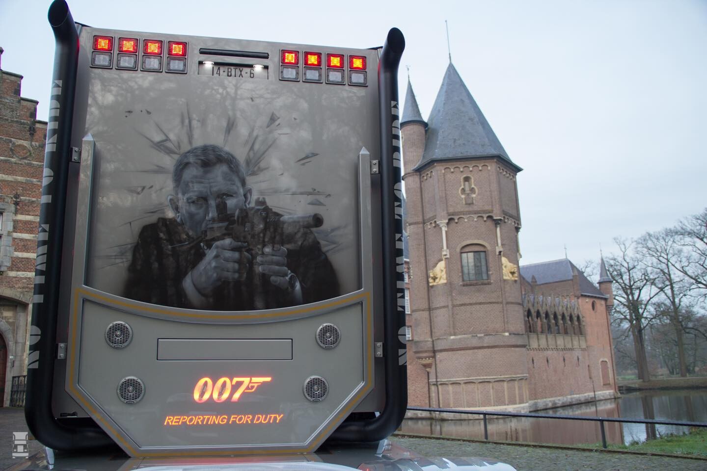 De DAF XG+ 530 FTG werd geleverd door Verspui Trucks en opgebouwd in samenwerking met TSW Truckstyling. Het spuitwerk werd uitgevoerd door Spuiterij Cranen, terwijl MWDesigns zorgde voor de special paint. De truck is in het thema van James Bond gespoten en het resultaat is zonder meer spectaculair. Zo is er een vlakke achterwand gemonteerd, met daar achter een slangenrek met daarnaast twee matzwarte staande uitlaten. Verder werd het gehele chassis aangekleed en werd er een spectaculaire achterbumper gemonteerd die van links naar rechts vol zit met verlichting. Een verelengde zonneklep, een extra onderspoiler en twee windgeleiders op de hoeken maken het plaatje af.