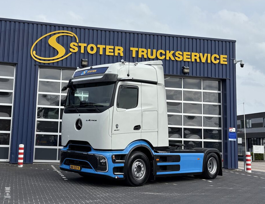 Het zijn ook lang niet allemaal trekkers. De eActros 600 bakwagen van Kuypers krijgt een opbouw voor wissellaadbakken. Stoter meldt trots dat hun trekker de eerste eActros 600 met e-PTO van Nederland is. De elektrische Mercedes-Benz gaat dus lang niet alleen maar rijden in de supermarktdistributie of in de bouw. Het moment is aangebroken dat breed de eerste stappen naar elektrisch transport worden gezet.