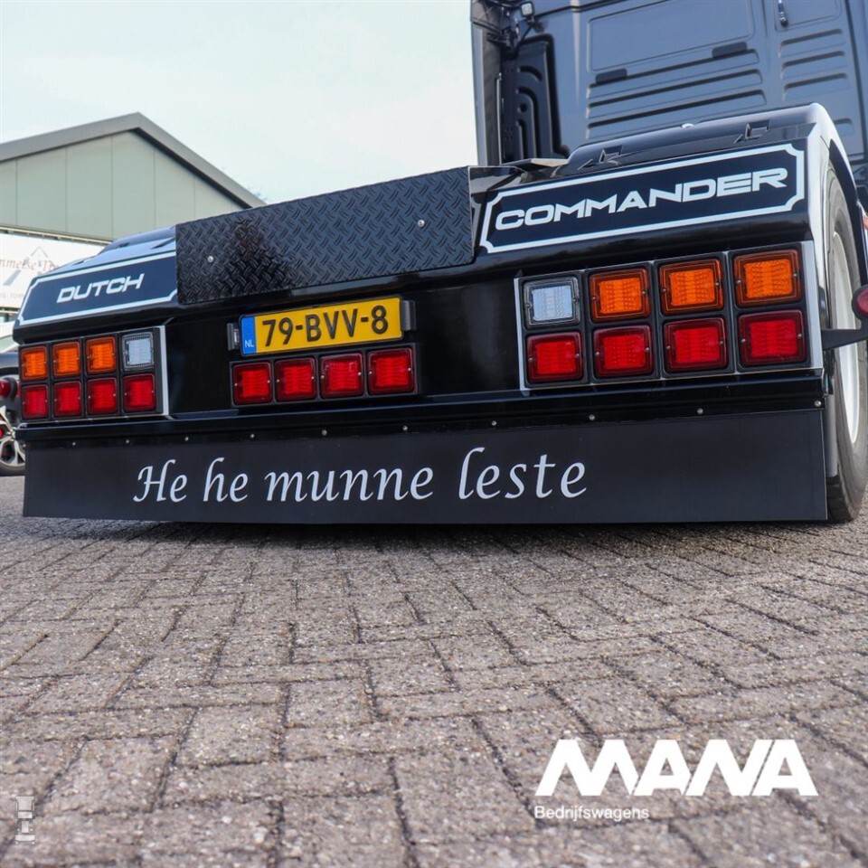 De MAN Dutch Commander is een speciale trekker geheel in Hollandse stijl. Samen met EDB Design ontwierp MAN deze auto met de klassieke Commander in het achterhoofd. Van Winkoop spoot de trekker in mooie grijs met zwarte kleuren en verzorgde ook de opbouw van de accessoires van Go-in-Style. Het leverde een unieke vrachtwagen op, die MAN trots toonde op allerlei evenementen. Lees hier ons eerdere artikel over de Dutch Commander.
