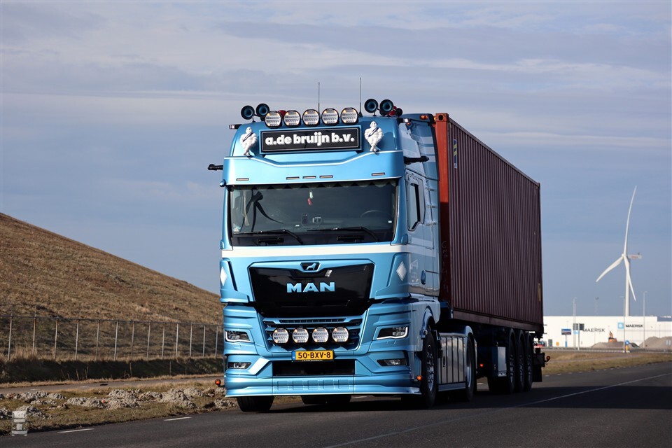 Het opbouwen van de TGX had heel wat voeten in de aarde. Al in mei 2024 haalde Adrie zijn spiksplinternieuwe MAN op bij de fabriek in München. Pas na de Kerstdagen was de trekker gereed. Hoewel er veel aan de MAN gebeurd is, was dit niet de grootste oorzaak van de lange doorlooptijd. Het jaar verliep voor Adrie met veel turbulentie. Vandaar dat de TGX de tekst ‘Turbulence’ mee kreeg.