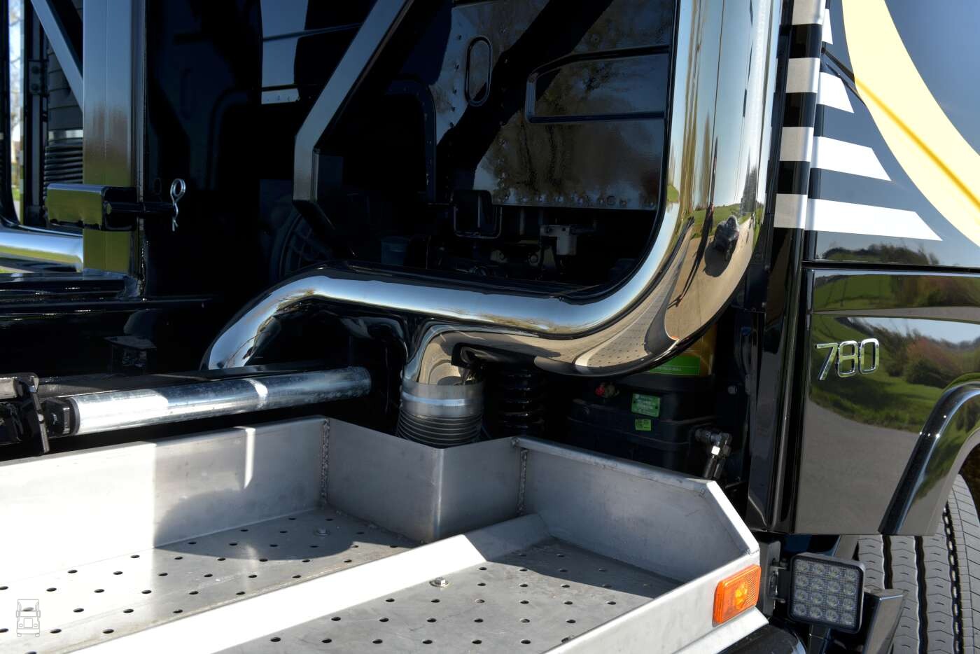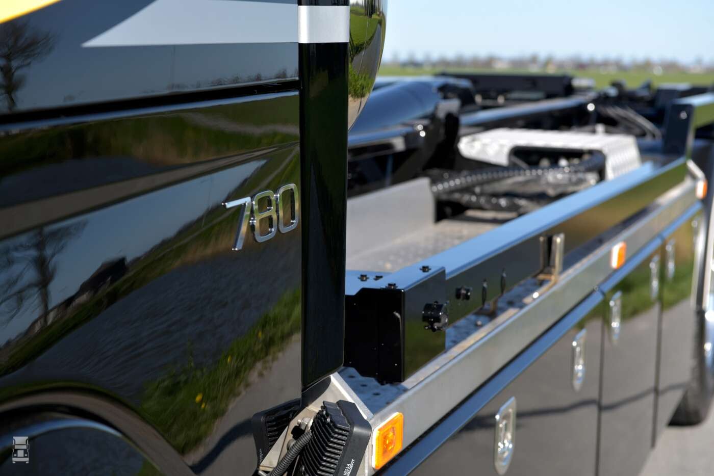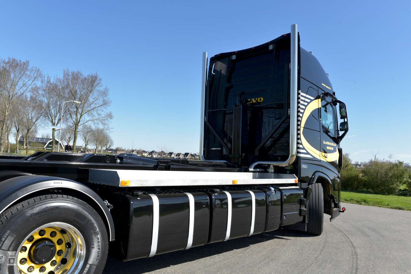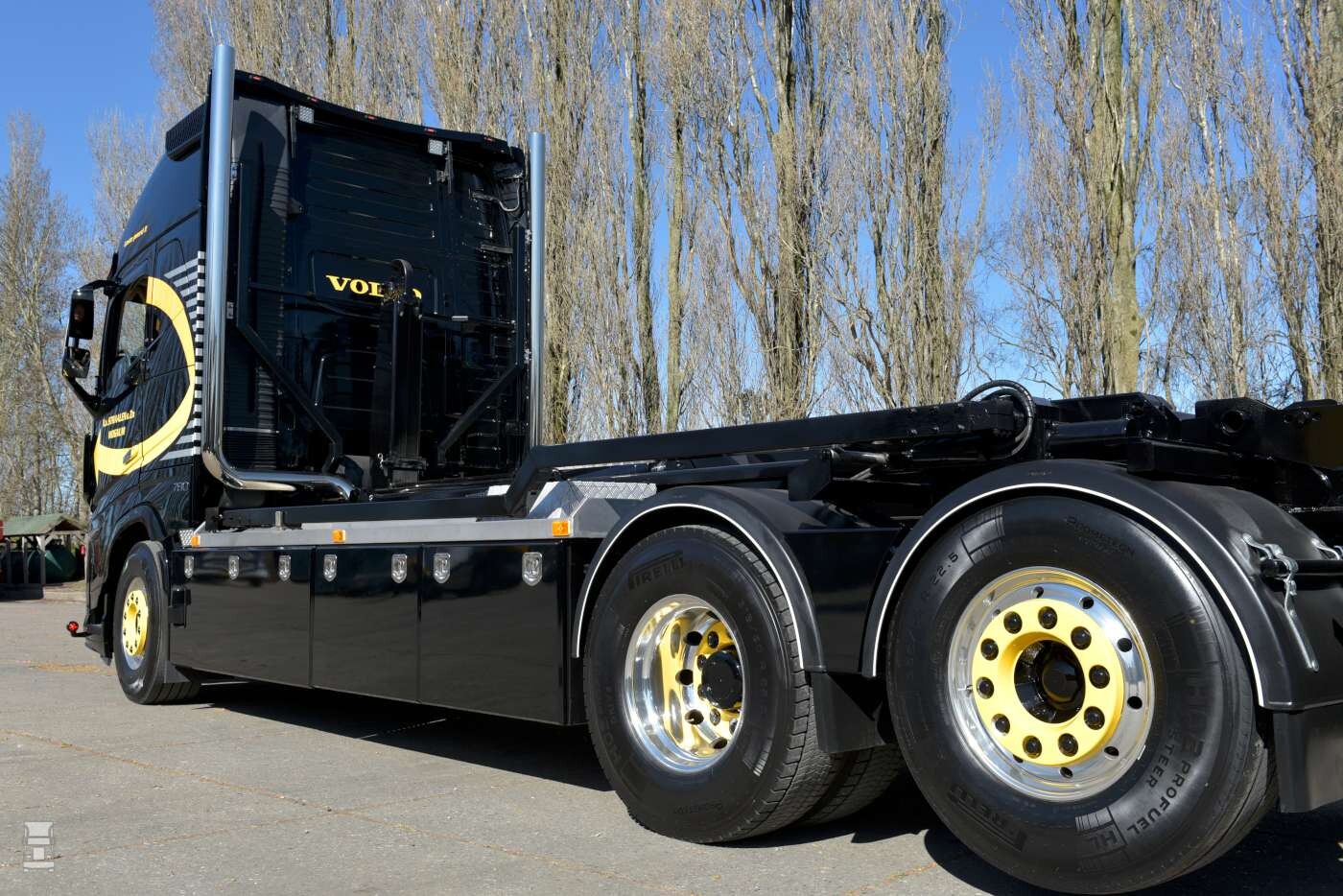 De truck werd voorzien van een 25 tons VDL afzetsysteem met een afnetsysteem. Ligthart carrosserie zorgde voor de opbouw van de installatie waarna John Bakker van Allround de verdere opbouw deed. De dubbele, staande uitlaten zijn gemaakt door Gerlas uit Wognum. ,,Die uitlaten zijn ook echt aangesloten, maar ik wilde geen klep’’ aldus Nico. Het interieur werd aangepakt door Super VKdesign in Harkema. Het spuitwerk werd uitgevoerd door Van Winkoop.
