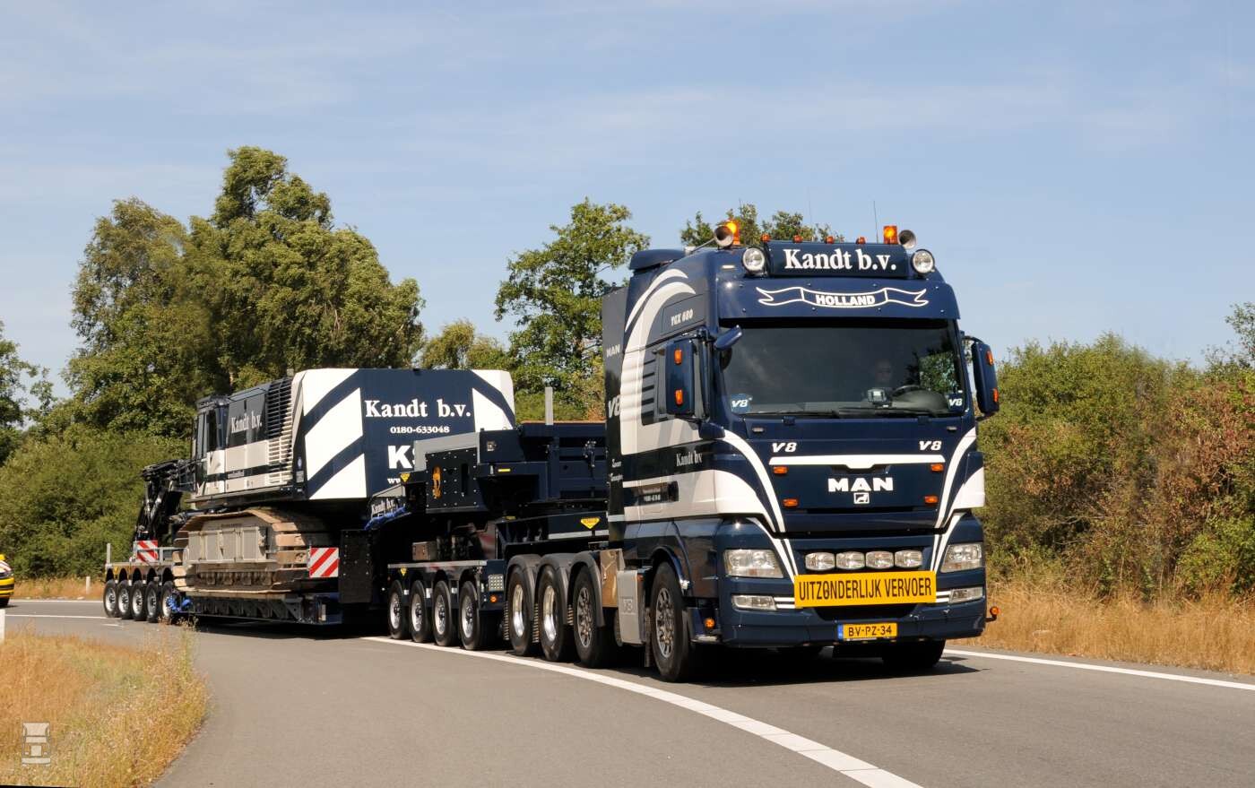 Chauffeur Jeroen Bootsma van Kandt BV rijdt inmiddels met een FH16 maar die oude MAN V8 was eigenlijk een uniek ding. Gelukkig hebben we de foto's nog!