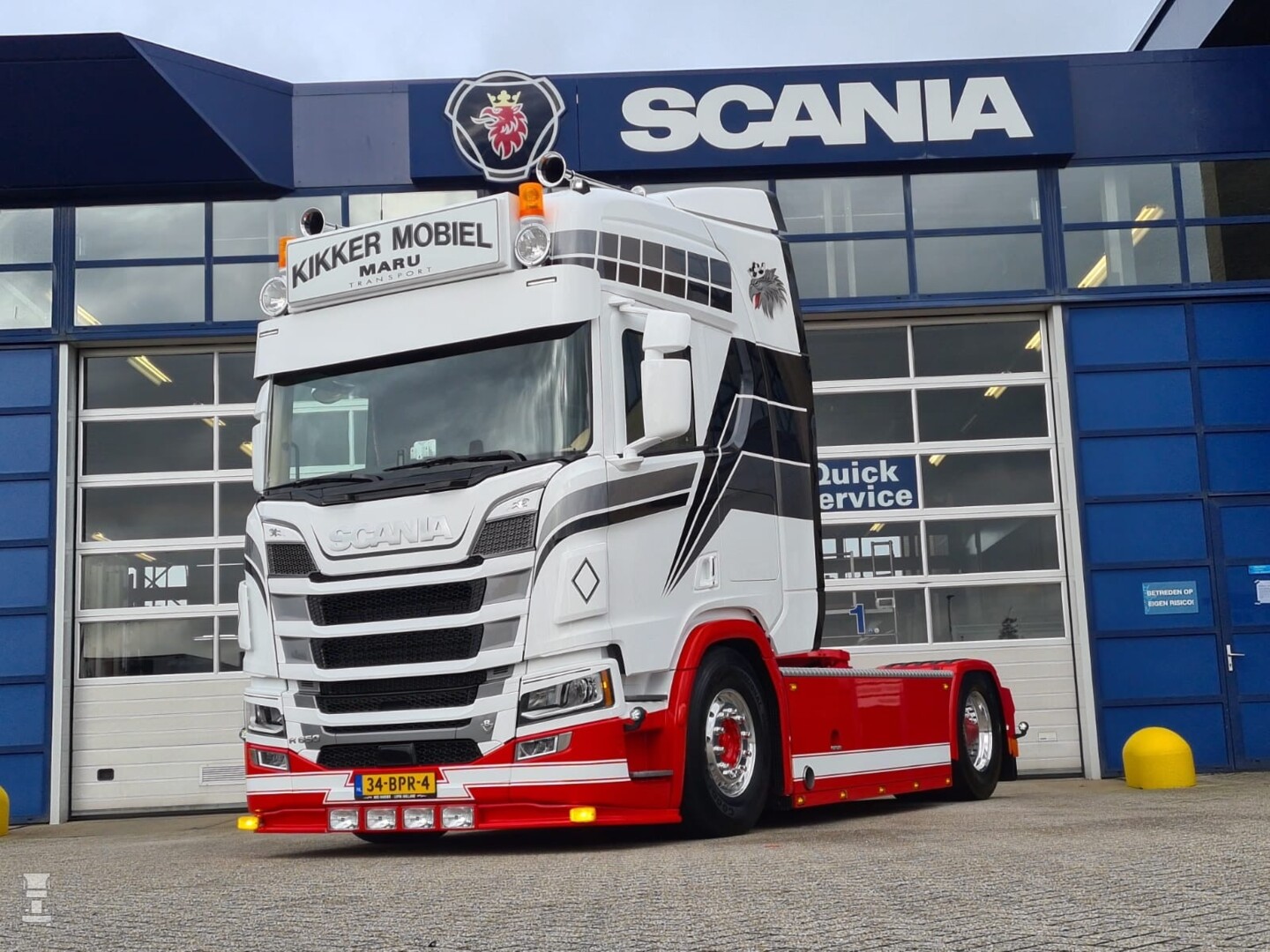 Scania Waddinxveen leverde de nieuwe Scania af. het is een R650 4x2 trekker met een Highline cabine. De trekker werd helemaal in de oude stijl gespoten en dat staat zo'n nieuw model ook erg goed. Bijzonder is dat Maru koos voor een handbak in deze nieuwe Scania. Dat is helemaal oldskool, maar daarmee mis je wel een aantal slimme systemen aan boord.