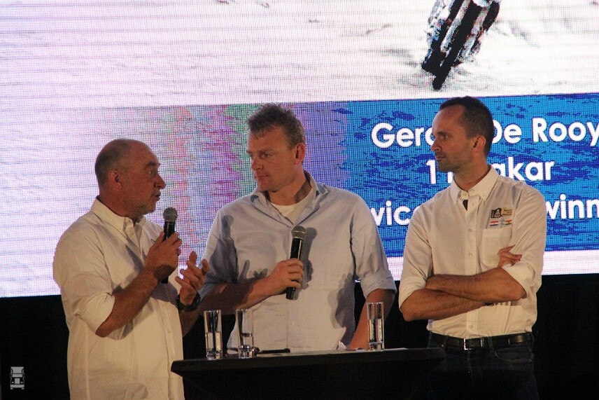 Naast de presentatie werden er ook drie deelnemers op het podium geïnterviewd. Voor ons is het gesprek met Gerard de Rooy uiteraard het meest interessant. De Rooy gaf aan blij te zijn met de nieuwe route en er in 2017 zeker bij te zijn. Er zullen geen grote wijzigingen aan de trucks plaats vinden, wat er wel gaat gebeuren zal zich er vooral op richten de Iveco's nog betrouwbaarder te maken, niet zo zeer om ze sneller te maken. Hij vond het te vroeg om iets te kunnen zeggen over de samenstelling van het team.