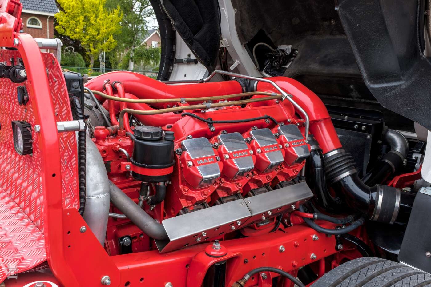 Hij restaureerde de oude MAN en sleutelde er een prachtige MAN V8 motor in met een vermogen van 660 pk. Uiteraard werd ook de rest van de aandrijflijn aangepast voor al dat vermogen, met een ZF16 bak, een zwaardere koppeling en een achteras met naafreductie. Je leest het hele verhaal in BIGtruck online magazine!