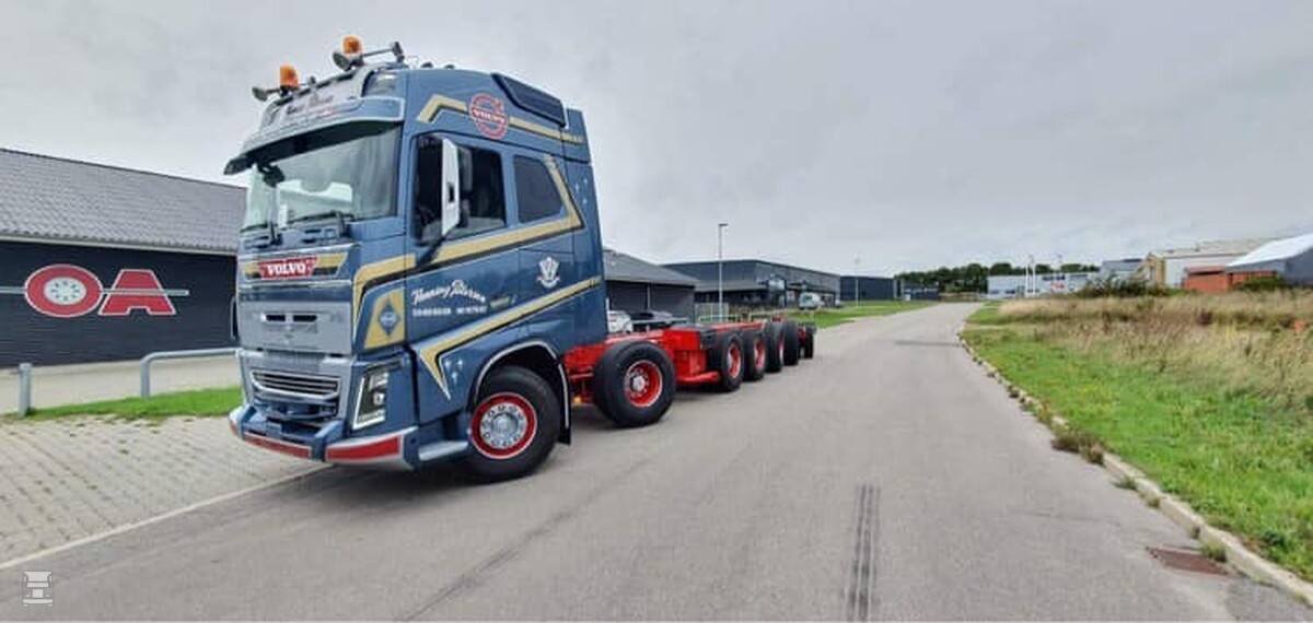 Het Deense ombouwbedrijf OA-Opbyg heeft een bijzonder kunststukje afgeleverd. Van een Volvo FH 16.750 met 6x4 chassis, werd een 12x4+2 gemaakt, zeven assen dus. Dat hield de monteurs van het bedrijf wel even bezig.