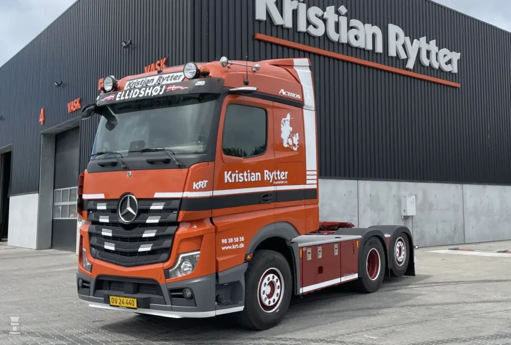 Het Deense bedrijf Kristian Rytter rijdt ook met het huidige model van de Actros L. Voor de nieuwe ProCabin die besteld werd, overigens gewoon een diesel, werd er lang nagedacht over het ontwerp van het front. De grille maakte nogal prominent deel uit van het ontwerp van de trucks van Rytter, en met dat dichte front zou het er heel anders uit gaan zien.