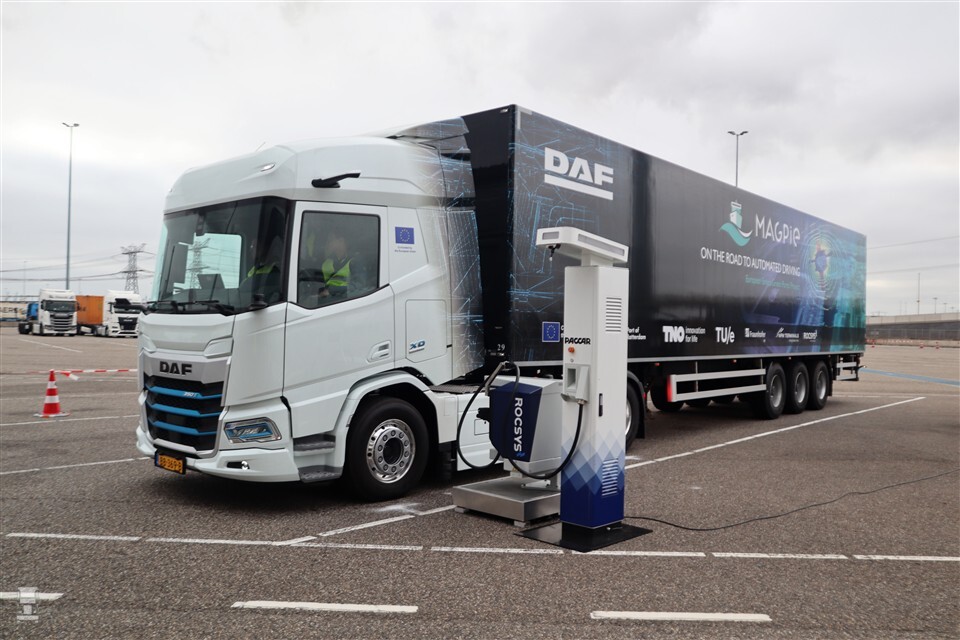 Project MAGPIE, dat deels betaald wordt door de Europese Unie, richt zich op het elektrificeren en automatiseren van vrachtwagens. Het gaat hierbij niet om het vervangen van chauffeurs, maar juist om het werk van chauffeurs makkelijker te maken. Zo was vandaag te zien hoe een elektrische DAF XD geheel zelfstandig naar een laadpaal kan rijden. Daarbij sluit de laadkabel zich helemaal zelfstandig aan, zonder dat hier een chauffeur voor nodig is.