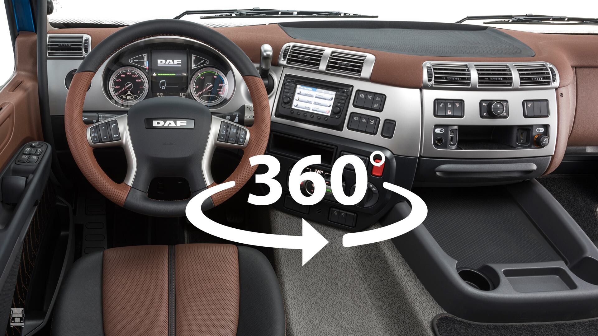 De mogelijkheden van online media worden steeds groter. Zo hoef je voortaan de deur niet meer uit om een cabine interieur te bekijken. Op de DAF site vind je deze grappige applicatie waarmee je 360 graden in het rond kunt kijken. Je kunt in het schermpje rechts op de pagina zelf allerlei opties aanvinken die vervolgens meteen getoond worden. Probeer maar eens, best leuk gedaan!
