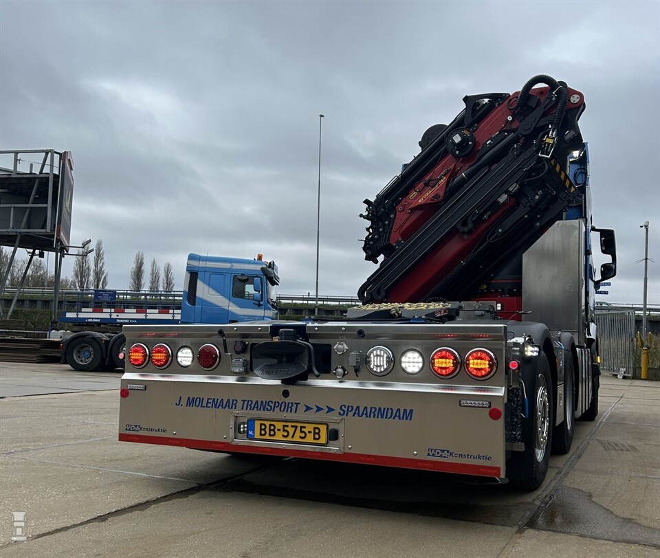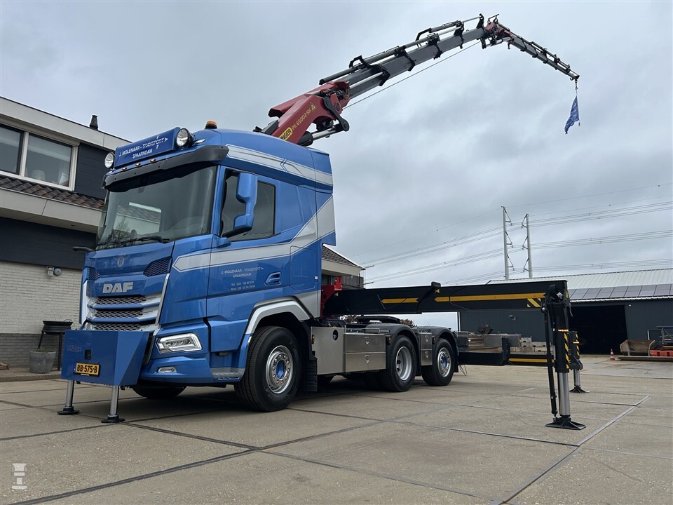 Zo kreeg de DAF XF bij Veldhuizen Wagenbouw in Groenekan een wide-spread achterstel, waardoor meer laadvermogen ontstaat. Op het chassis achter de cabine monteerde VDA Konstruktie een Palfinger PK 65002-SH kraan met een PJ 170 fly-jib. Met DPS (Dual Power System) heeft de fly-jib een maximale hefcapaciteit van maar liefst 6.500 kilo. De kraan is dankzij P-Fold automatisch in en uit te vouwen met één bedieningshendel.