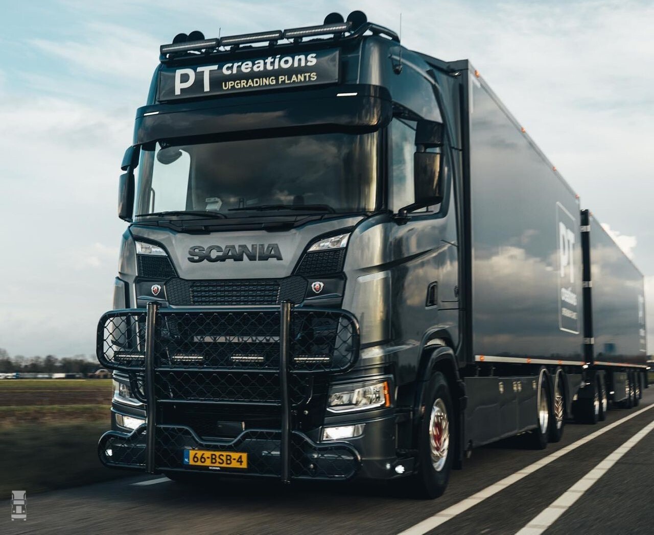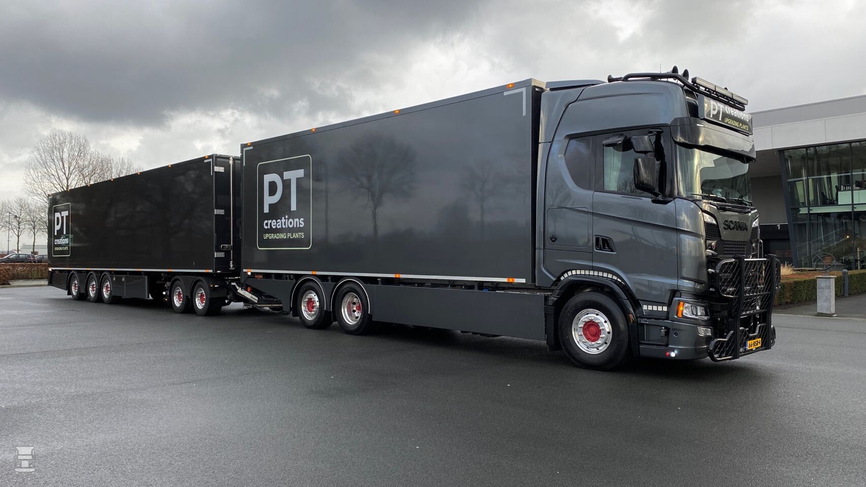 Plantenspecialist PT-Creations uit Wijk en Aalburg heeft een indrukwekkende LZV in gebruik genomen die is opgebouwd door Heiwo. Als trekkende machine fungeert een Scania S580.
